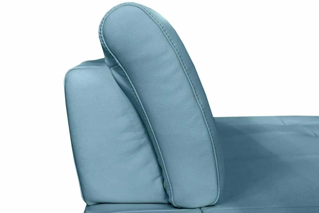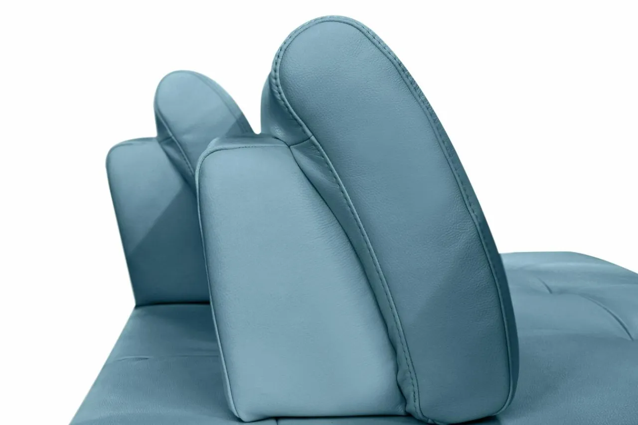 Zauroczy Cię lazurową barwą i ponadczasową strukturą skóry naturalnej. Zachwyci nowoczesnym projektem podstawy i dodatkowymi poduchami.