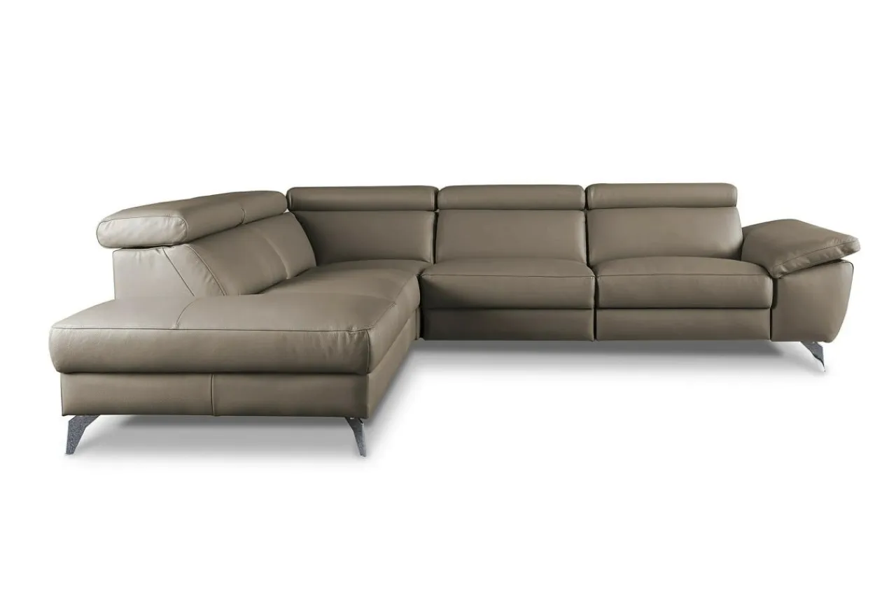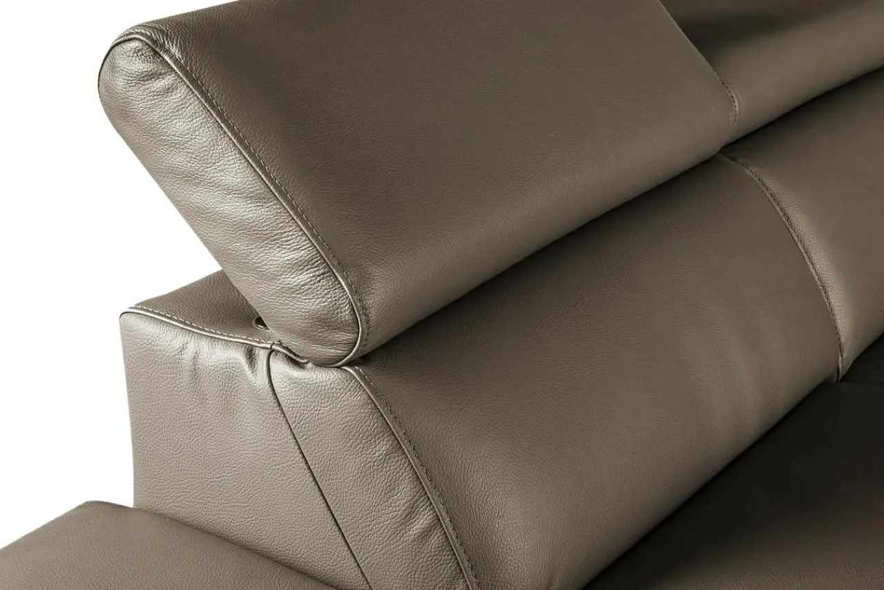 Tapicerka narożnika została pokryta skórą naturalną z kolekcji DOLLARO – model SMOG.