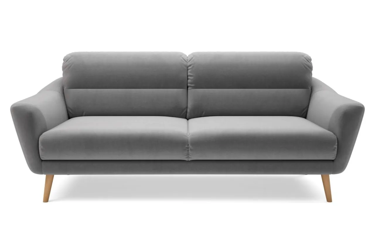 Sofa posiada wysokie drewniane nóżki, które idealnie łączą się z designem całej bryły.