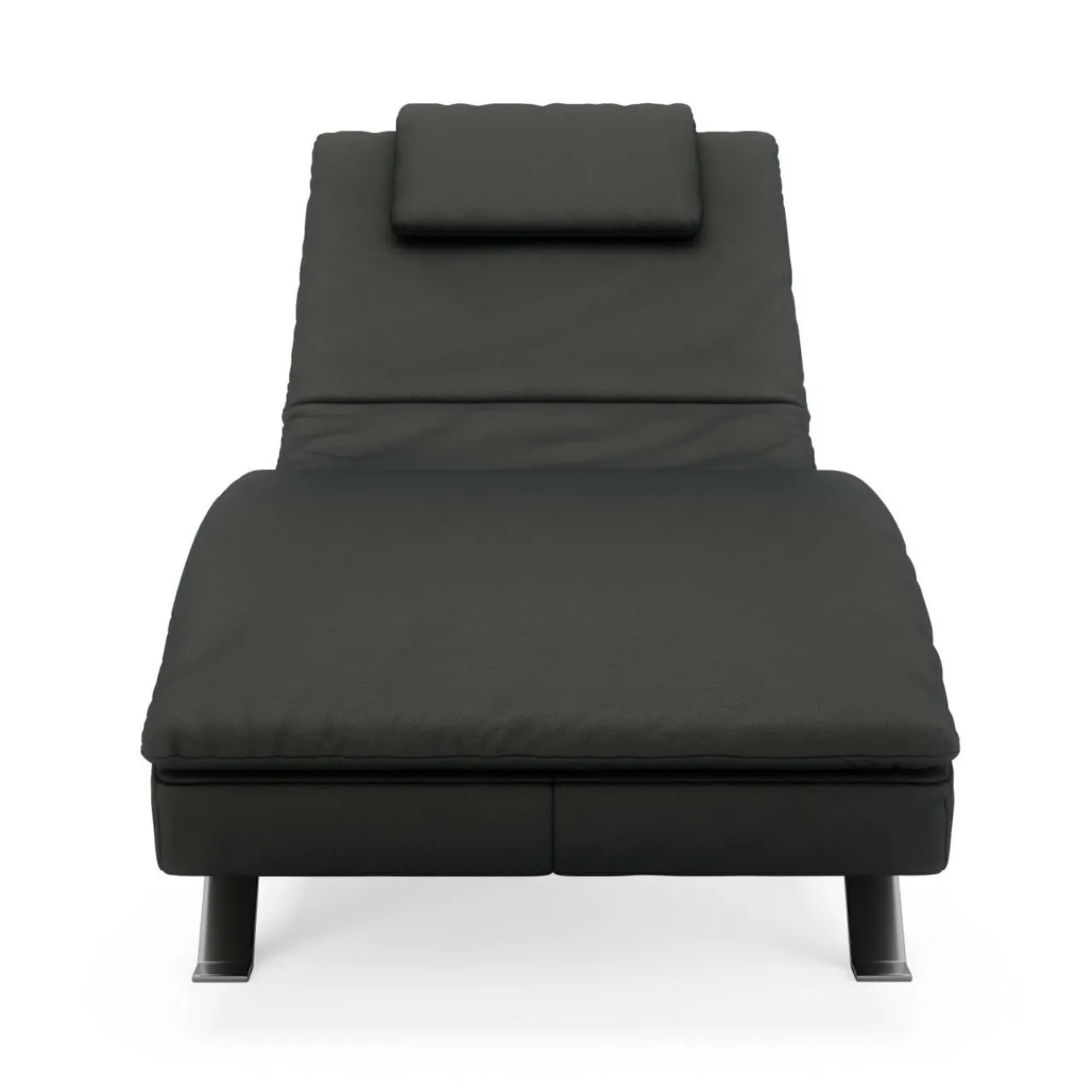 Tapicerka wykonana jest z eleganckiej i grubej skóry naturalnej DOLLARO NERO i obszyta nicią pod kolor. Szare nóżki malowane metodą proszkową świetnie dopełniają całości i podkreślają modernistyczny charakter mebla.