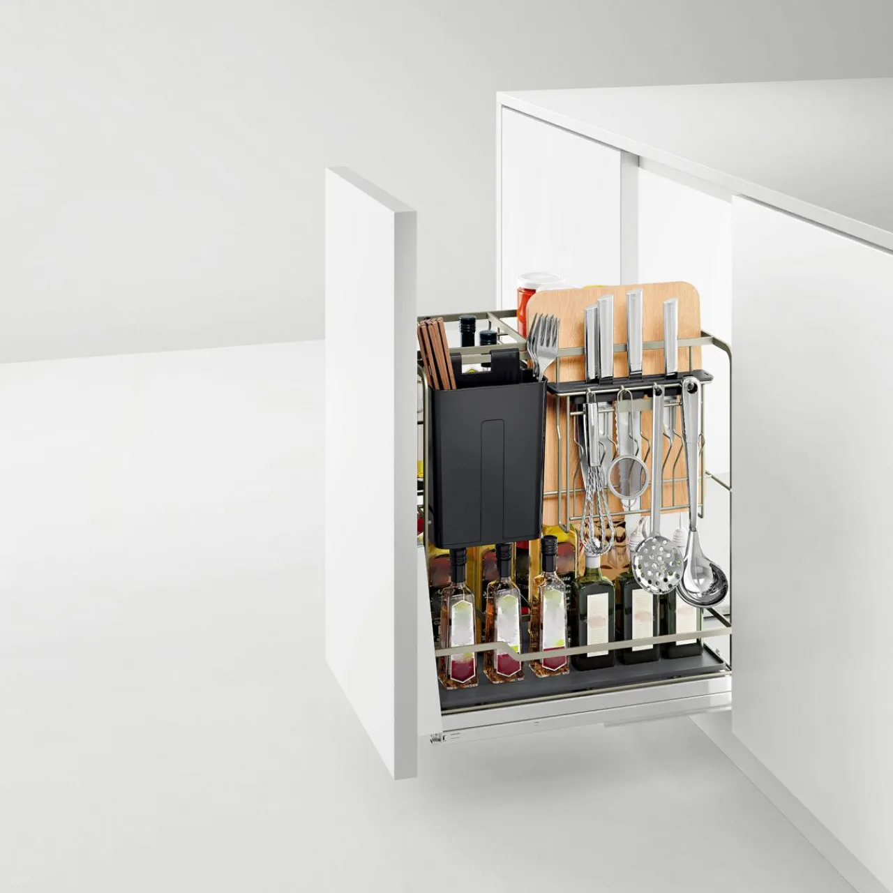 Wszystkie te elementy zaprojektowane ze smakiem i dbałością o detale, zostały przystosowane do montażu na wysuwanych prowadnicach.
