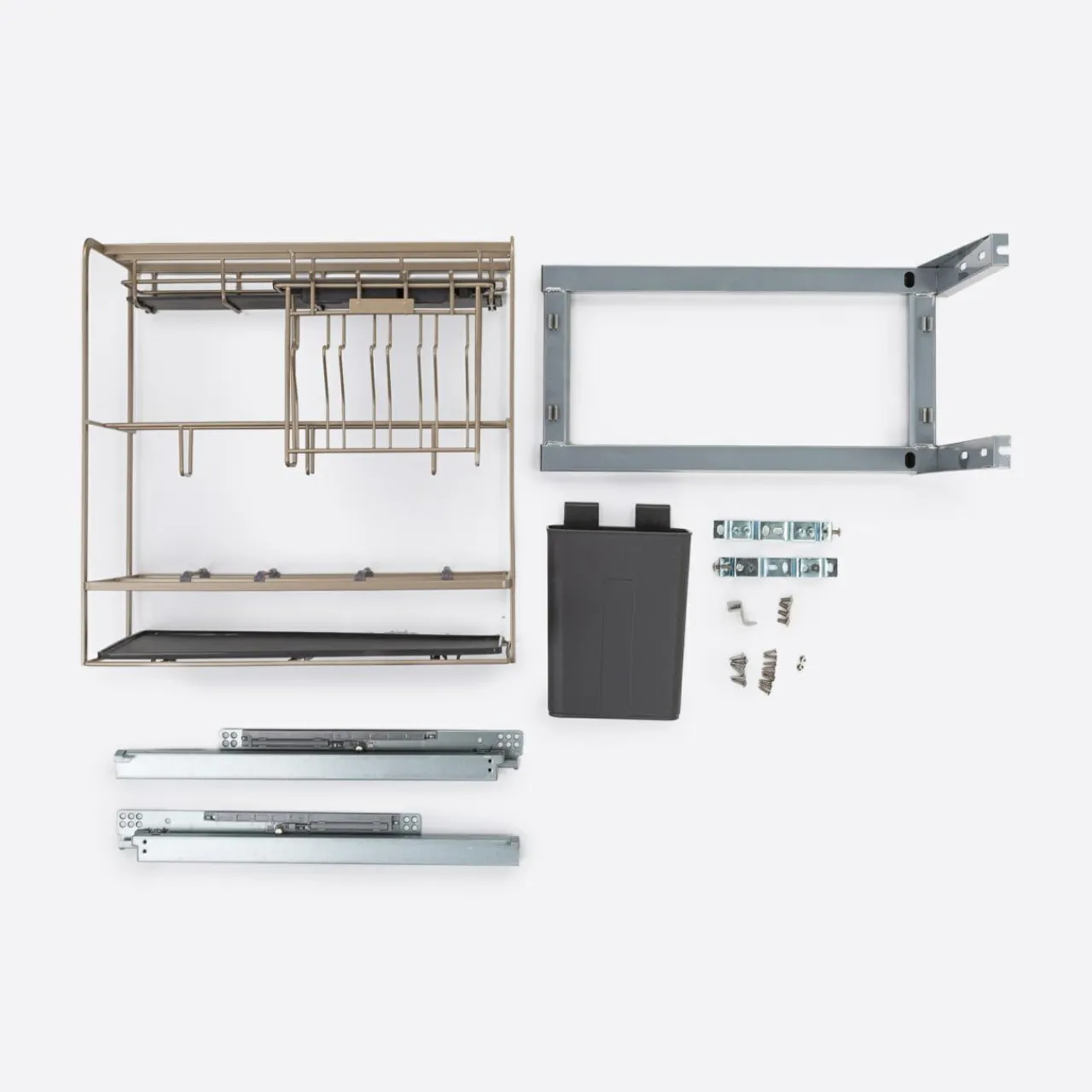 Składa się z 2 koszy, z których dolny możesz przeznaczyć na butelki i słoiki, natomiast górny został zaprojektowany pod kątem trzymania sztućców oraz mniejszych akcesoriów kuchennych. Całość jest montowana na prowadnicach. Wymiary to cargo to 26,4x46x49,5 cm. Dopuszczalne obciążenie koszy wynosi 25 kg.