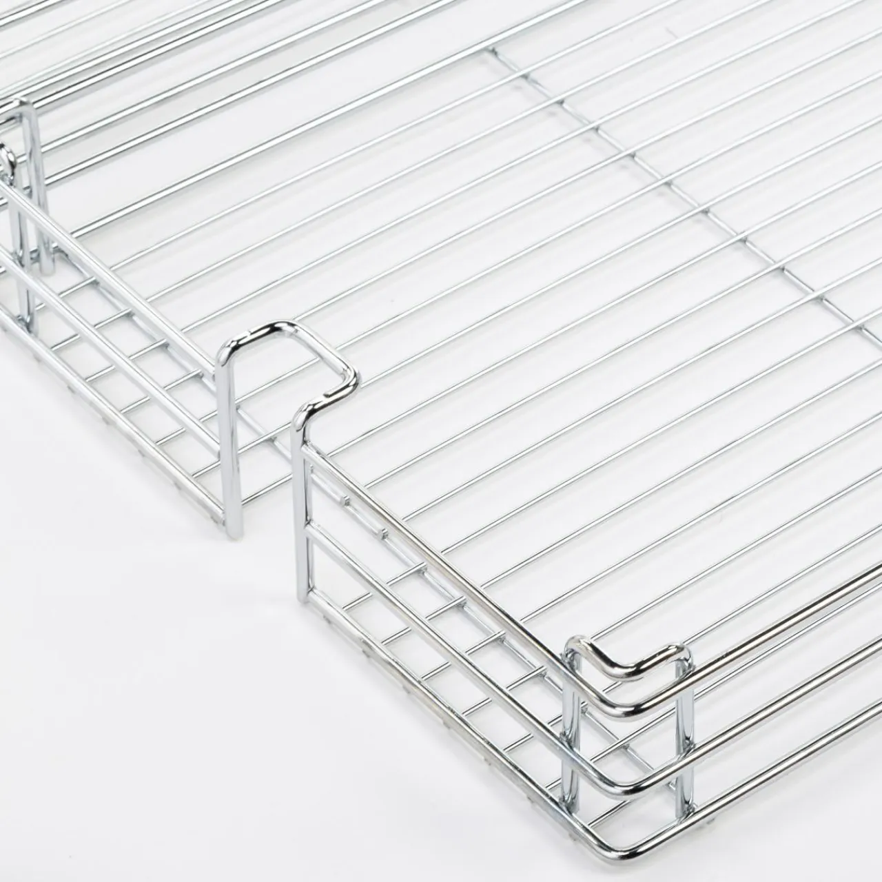 - Podstawa półek jest żebrowana, co zapobiega przywieraniu produktów do podłoża, a zawartość jest dodatkowo zabezpieczona galeryjką.