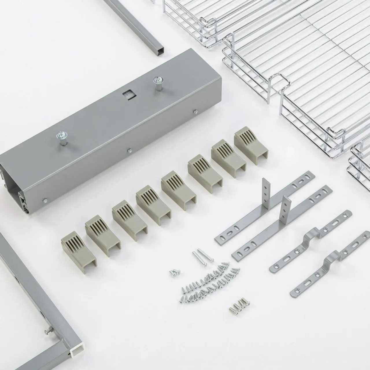 Zawiera ramę, stelaż i 4 kosze, które zamontujesz wewnątrz szafki. Specjalnie zaprojektowane uchwyty oraz profilowany kształt koszy pozwala na ich precyzyjne ustawienie i zwiększenie powierzchni, która możesz zagospodarować.
