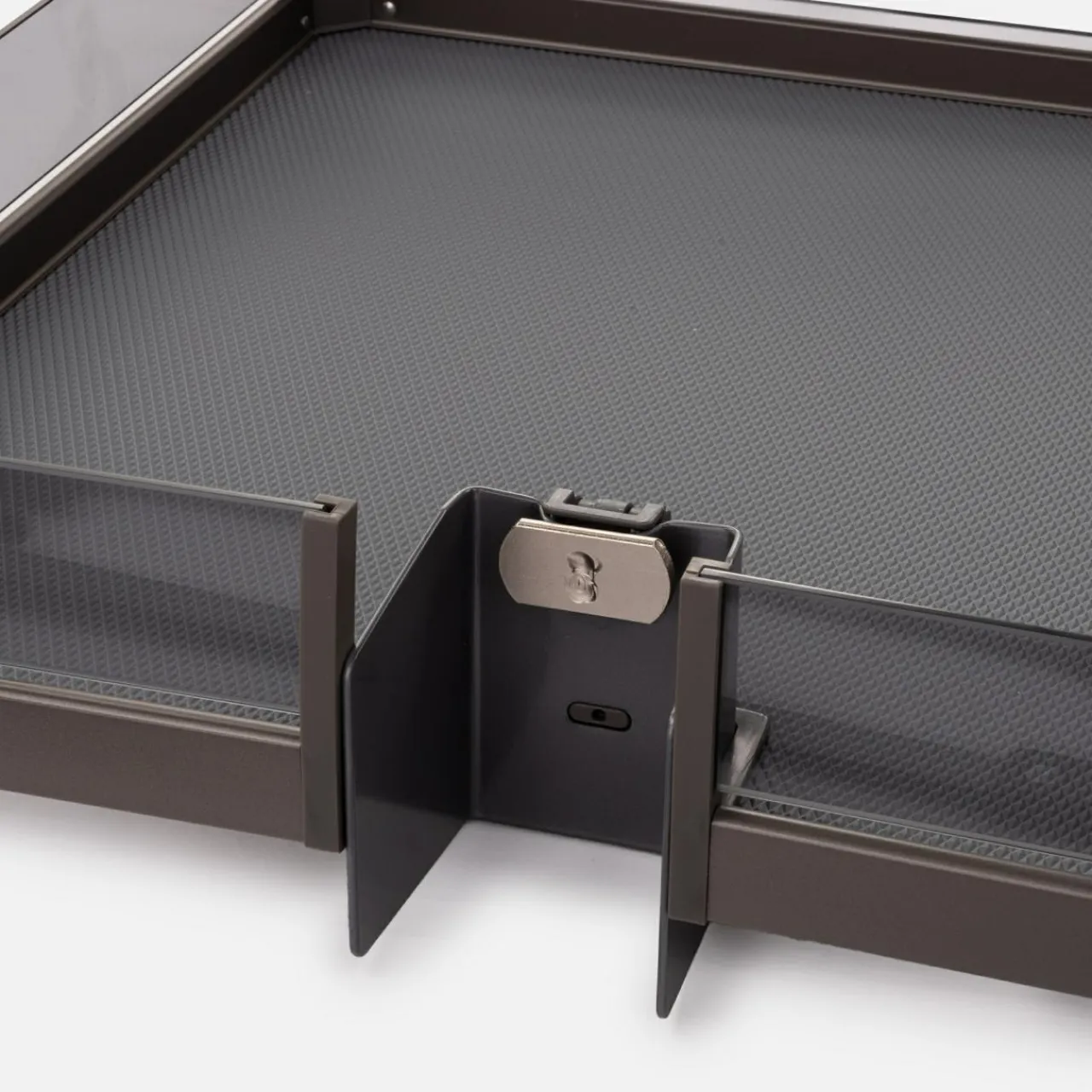 - Podstawa półek została wykończona wzorem zapobiegającym przywieraniu produktów, a zawartość jest dodatkowo zabezpieczona galeryjką.