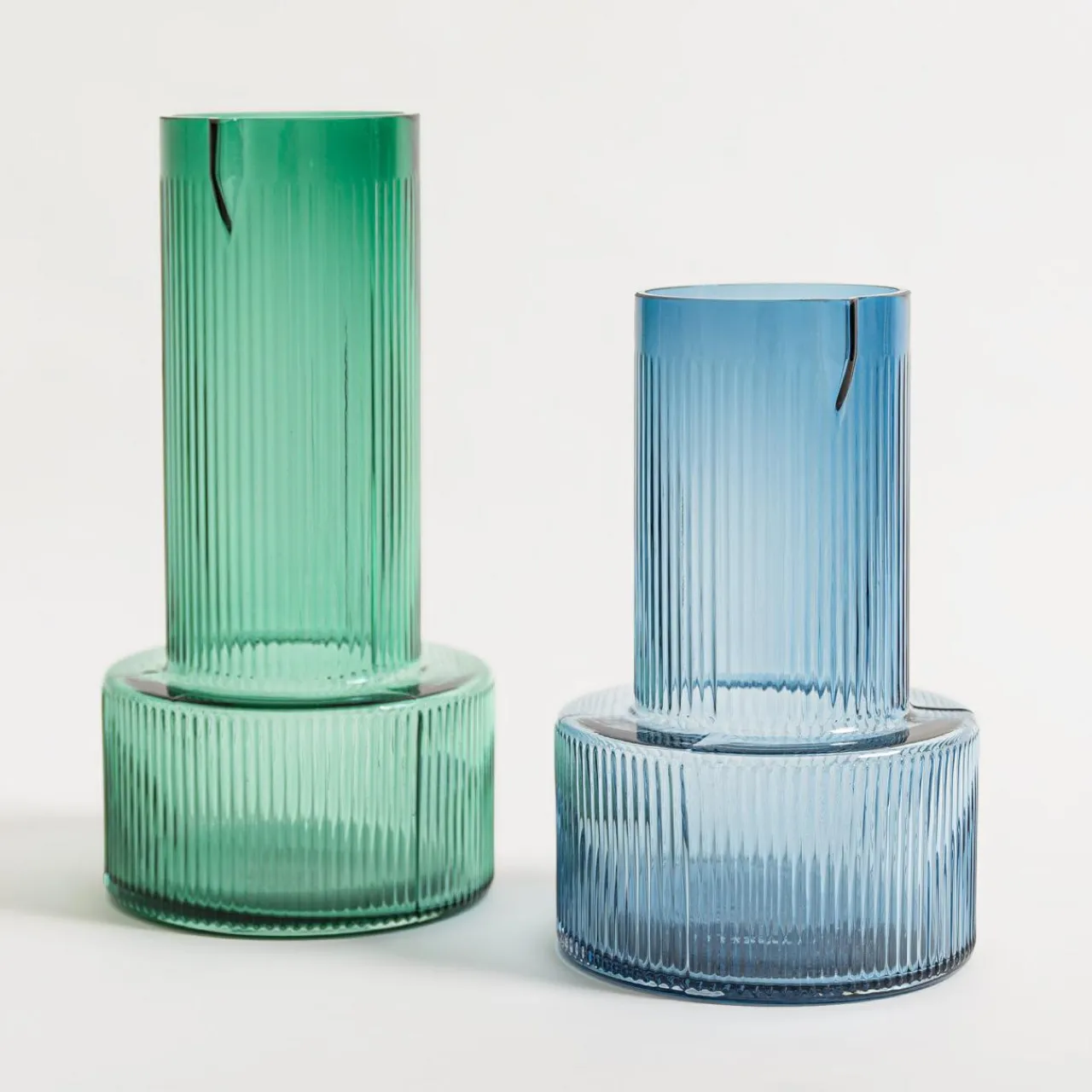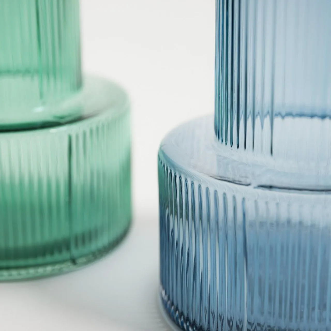 Wazon został wykonany ze szkła o ozdobnych żłobieniach lekko odbijających i załamujących światło, co jeszcze bardziej wyeksponuje blat Twojego stołu czy komody. Zgaszony niebieski kolor jest na tyle uniwersalny, że odnajdzie się w wystrojach nowoczesnych, ale też rustykalnych czy boho.