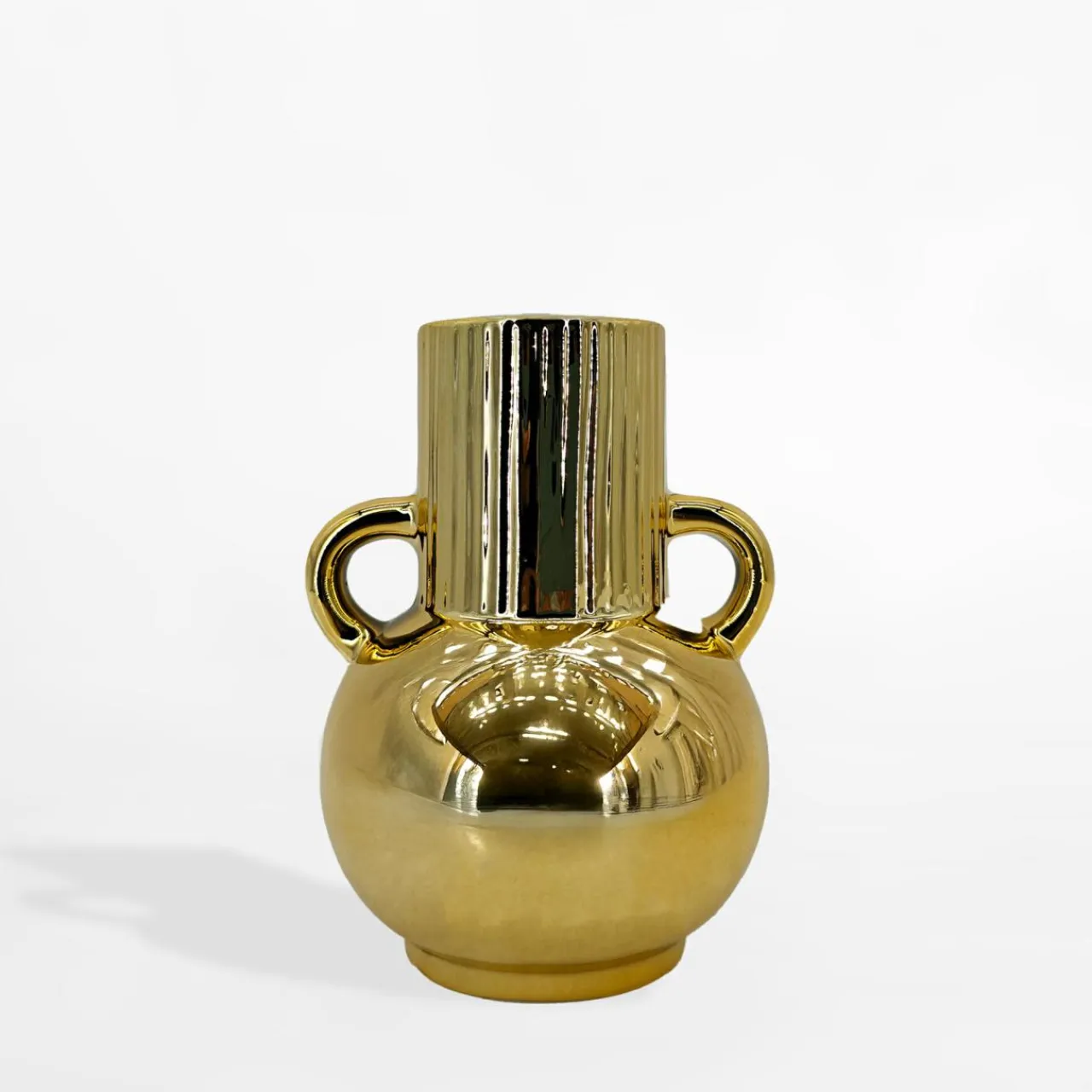 Ten elegancki wazon o wysokości 15 cm wyróżnia się swoim unikalnym designem: zaokrąglona dolna część nadaje mu subtelności, natomiast dwie dekoracyjne rączki i cylindryczna góra wprowadzą nutę klasyki w nowoczesnym wydaniu.