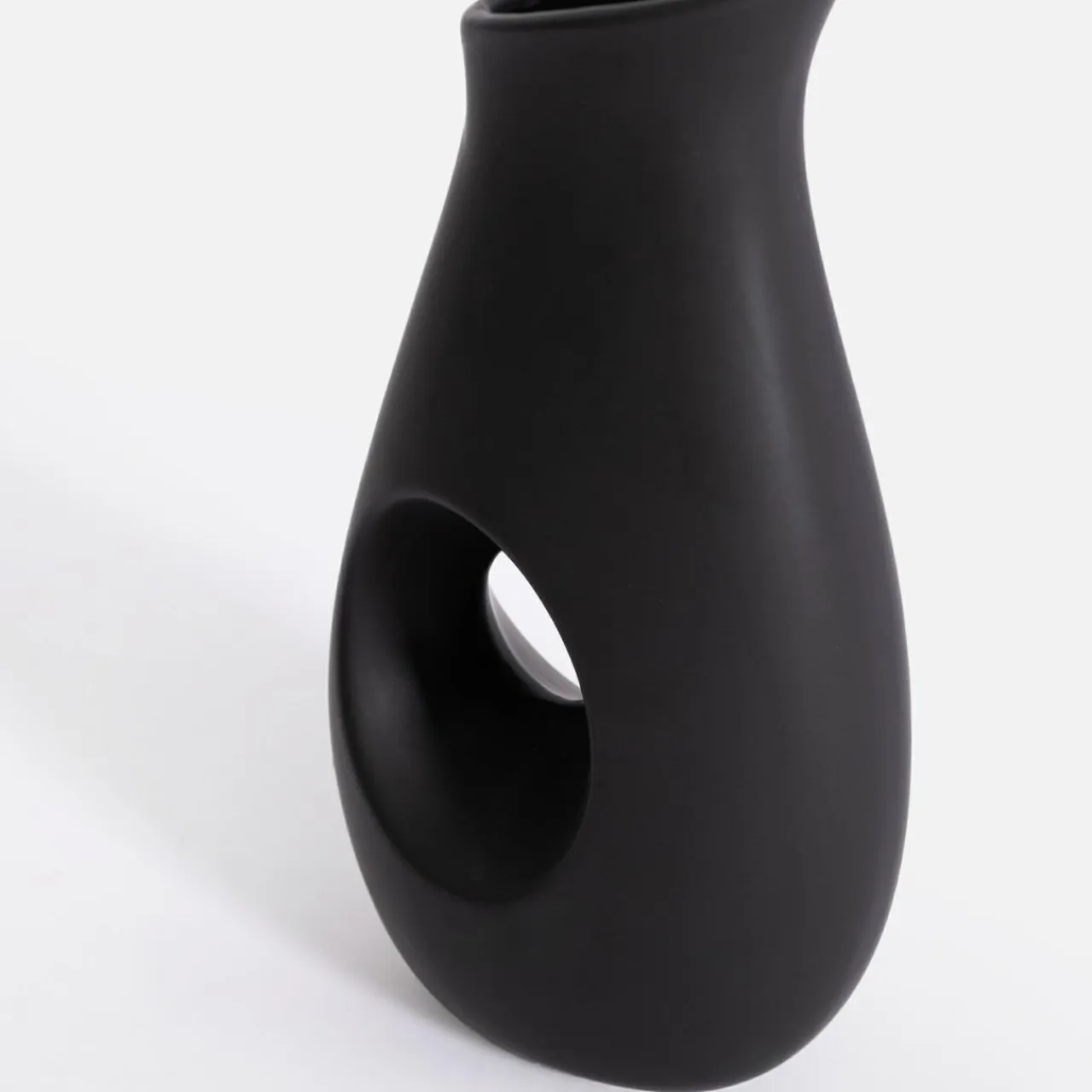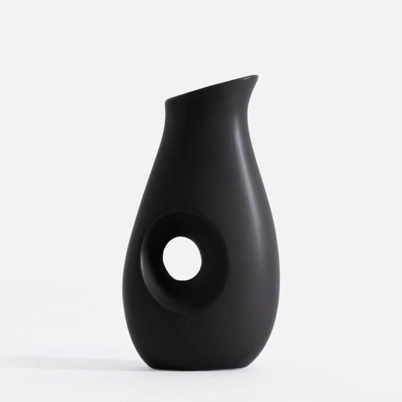 Dekorowanie pokoi nigdy nie było tak proste, jak teraz dzięki nowoczesnemu wazonowi wykonanemu z dolomitu, który cechuje się odpornością i stylowym wykończeniem. Czarny kolor i nowoczesny kształt sprawiają, że to nie tylko wazon, ale również samoistna dekoracja pomieszczenia. Jego wszechstronność pozwala łączyć go z różnorodnym stylem dekoracyjnym – odnajdzie się w przedpokoju, na komodzie w salonie, czy na stole w jadalni. Idealny do eksponowania świeżych kwiatów, suchych kompozycji lub jako samodzielna dekoracja wnętrza.