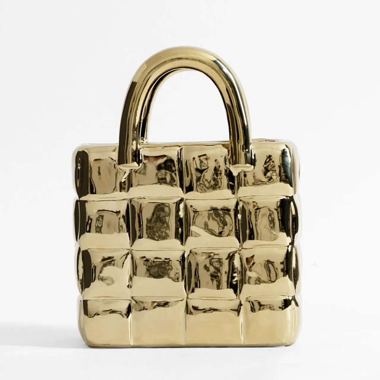 Wazon w kształcie torby to niepowtarzalny dodatek, który zachwyci formą i przyciągnie spojrzenia. Nietuzinkowy kształt wprowadzi do wnętrza swobodną atmosferę. Świetnie pasuje do nowoczesnych wnętrz i stylu glamour, rozświetlając aranżację.