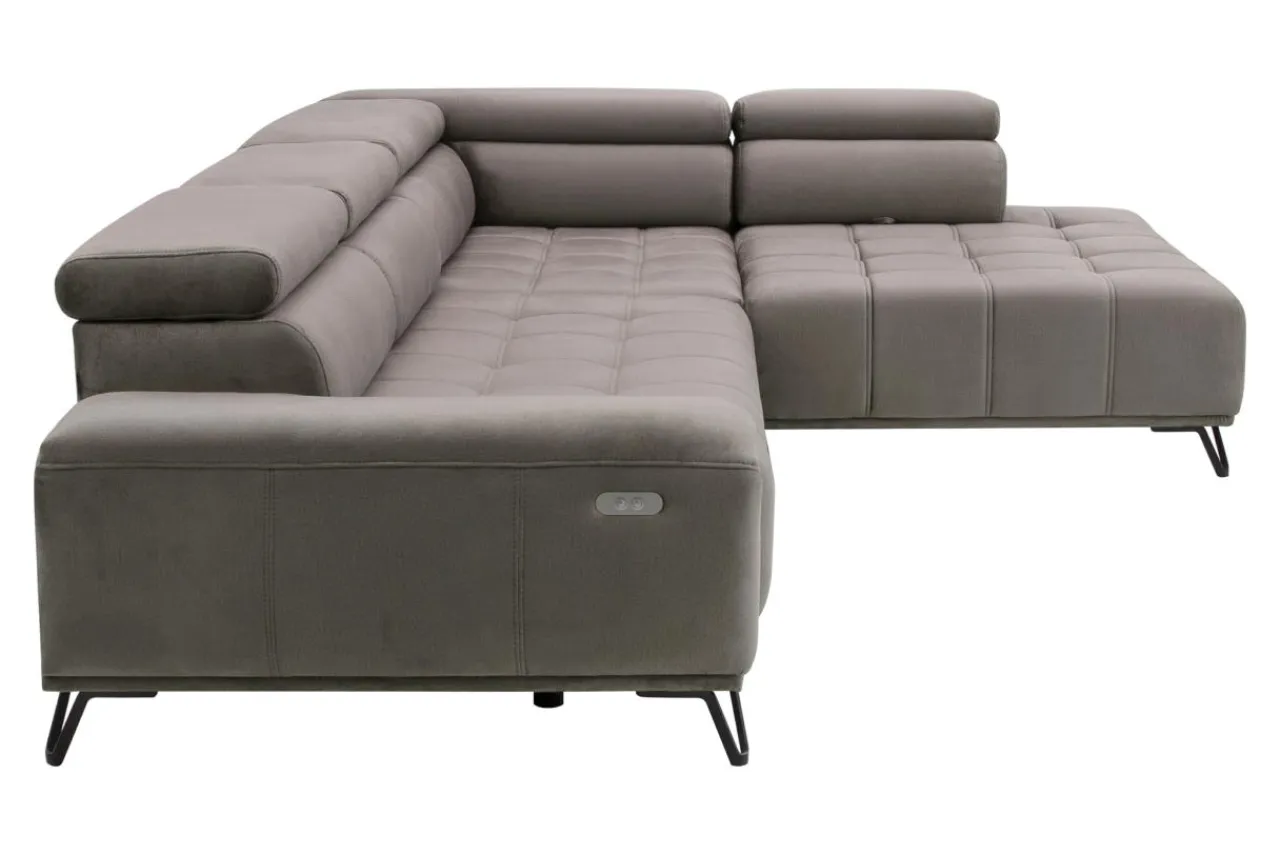 W narożniku PALLADIO L elegancja współgra z komfortem. Siedzisko zostało wypełnione piankami, pasami elastycznymi i sprężyną falistą. Konstrukcja mebla oparta została na wysokich metalowych nóżkach w czarnym kolorze. Siedzisko zdobi ozdobne pikowanie, natomiast delikatnie profilowane oparcia zwieńczone są 5 regulowanymi zagłówkami.