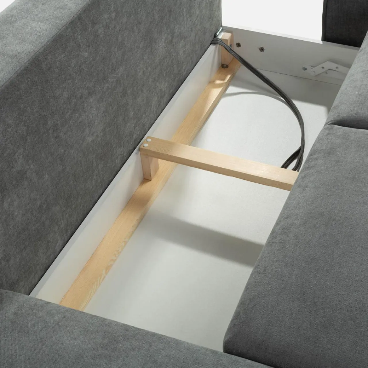 - Pojemnik pod siedziskiem to dodatkowa przestrzeń na pościel i inne domowe tekstylia.