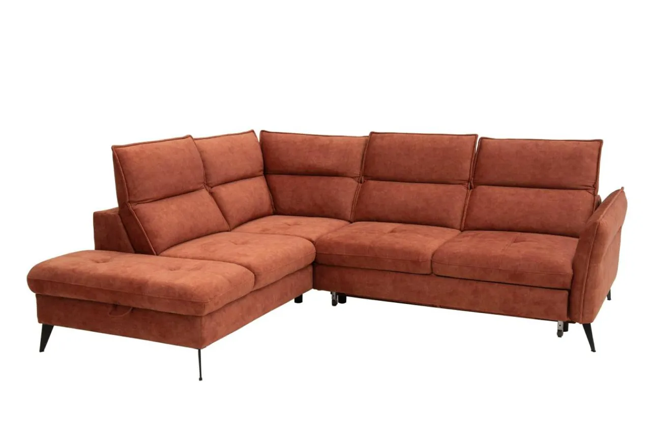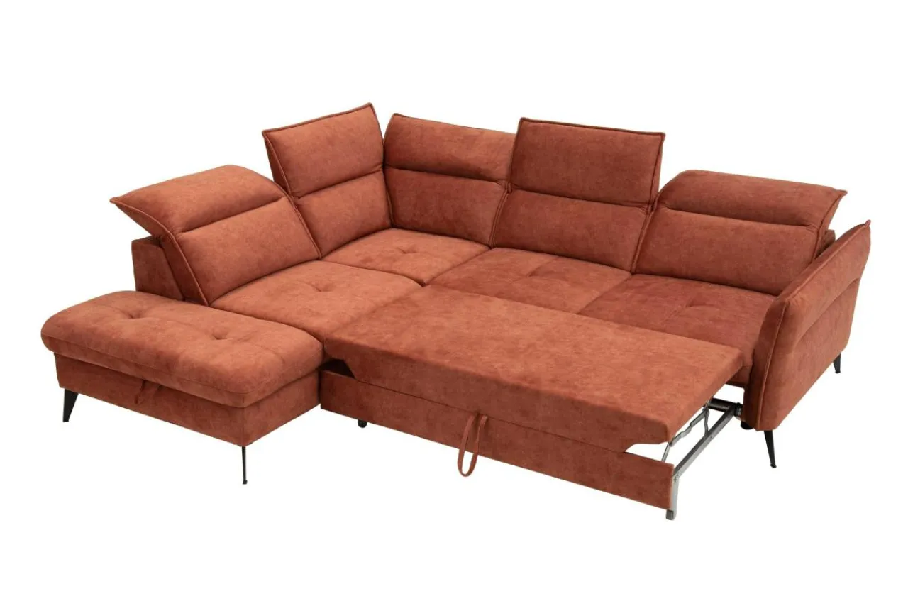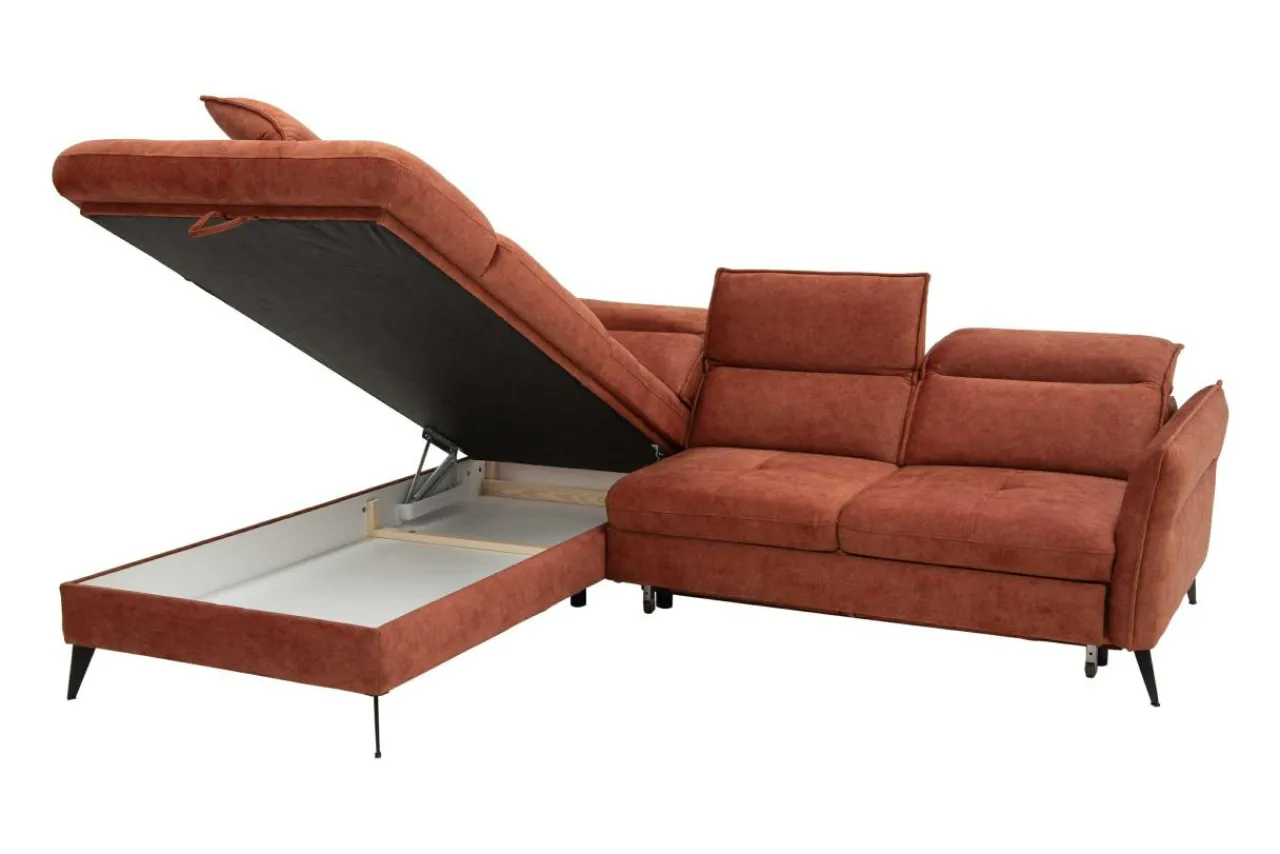 - Mechanizm rozkładania typu „delfin” to szybki i wygodny mechanizm, który sprawnie przekształci narożnik w miejsce na popołudniową drzemkę.