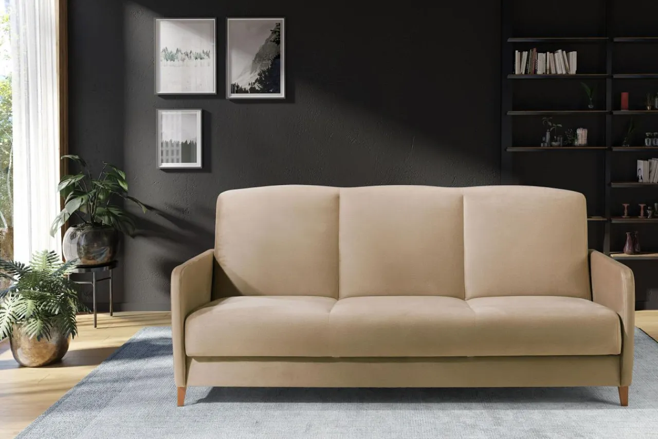 Dzięki przeszyciom i zaokrąglonym rogom przypomina niewielką sofę. Jednak, jak przystało na wersalkę jest to mebel funkcjonalny i uniwersalny, dlatego w razie potrzeby można ją rozłożyć.