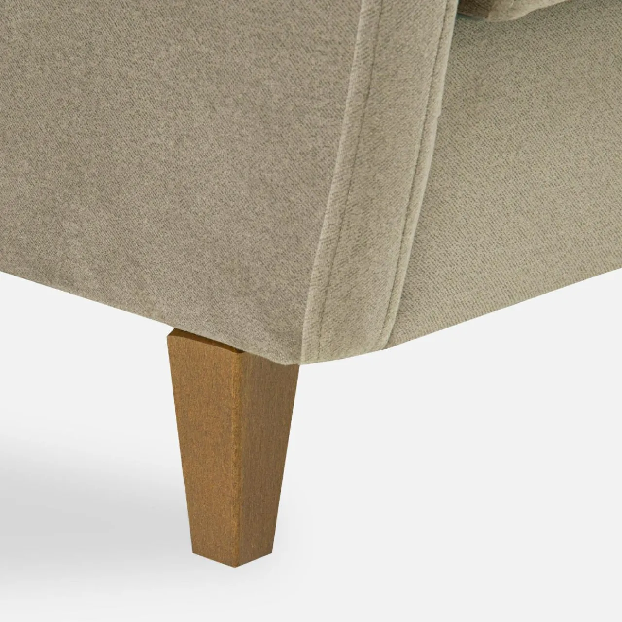 Sofa METEO została wykończona tkaniną ELEMENT w ciemnym, beżowym odcieniu.