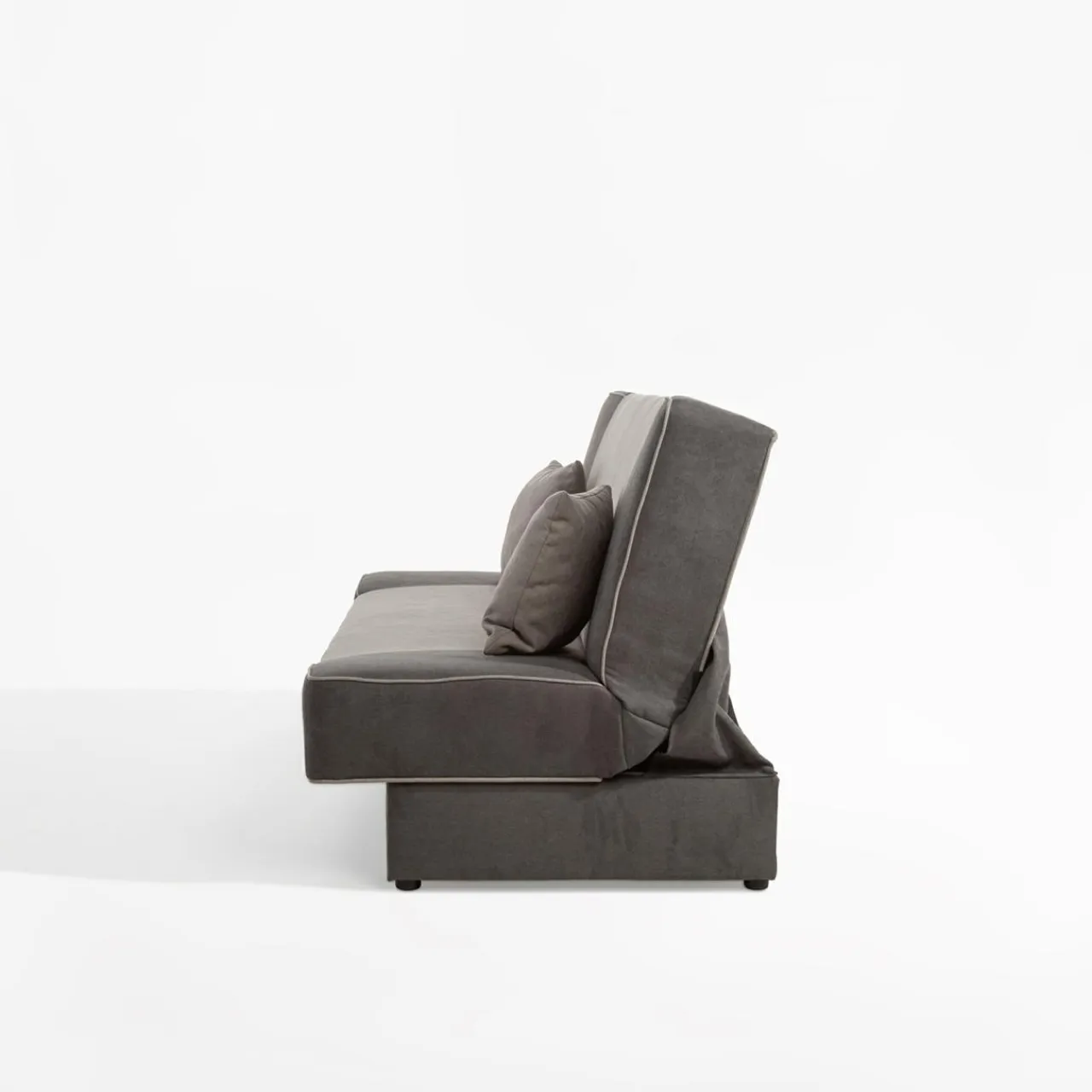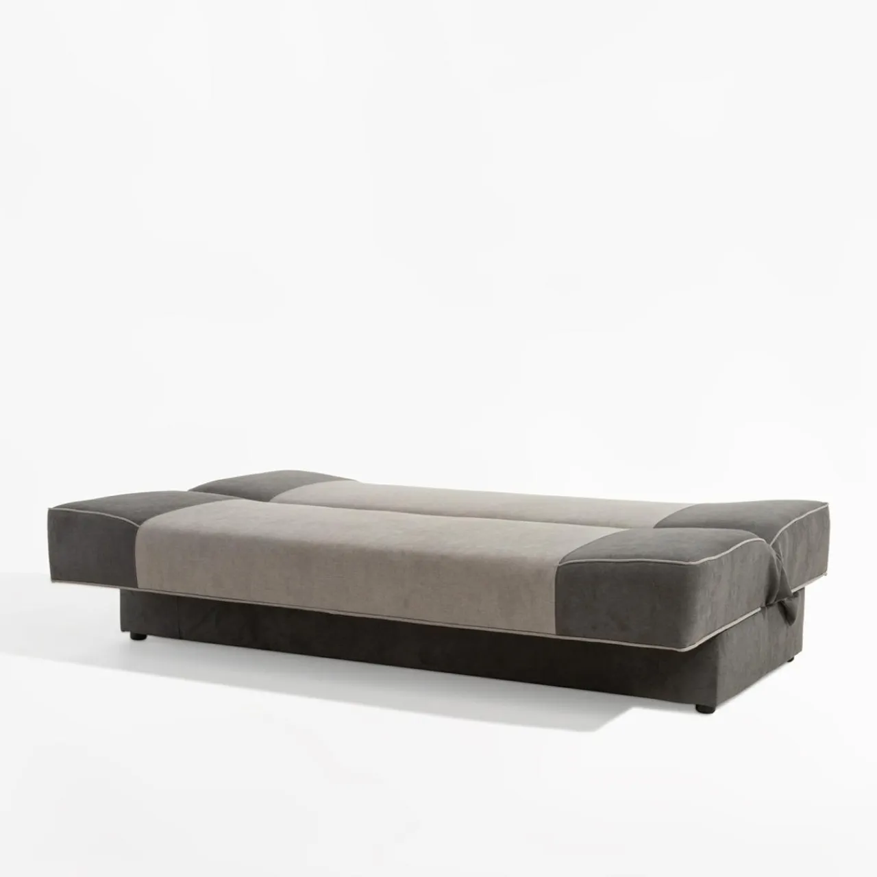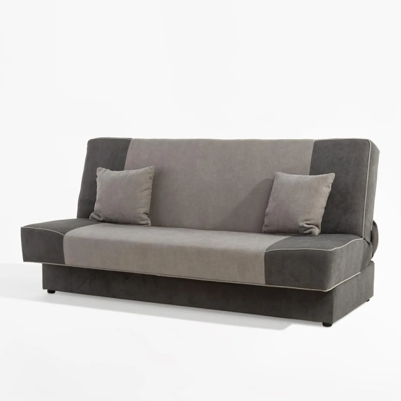 - Prosta bryła i uniwersalność – połączenie szarych kolorów sprawia, że wersalkę z łatwością wkomponujesz w nowoczesne wnętrze.