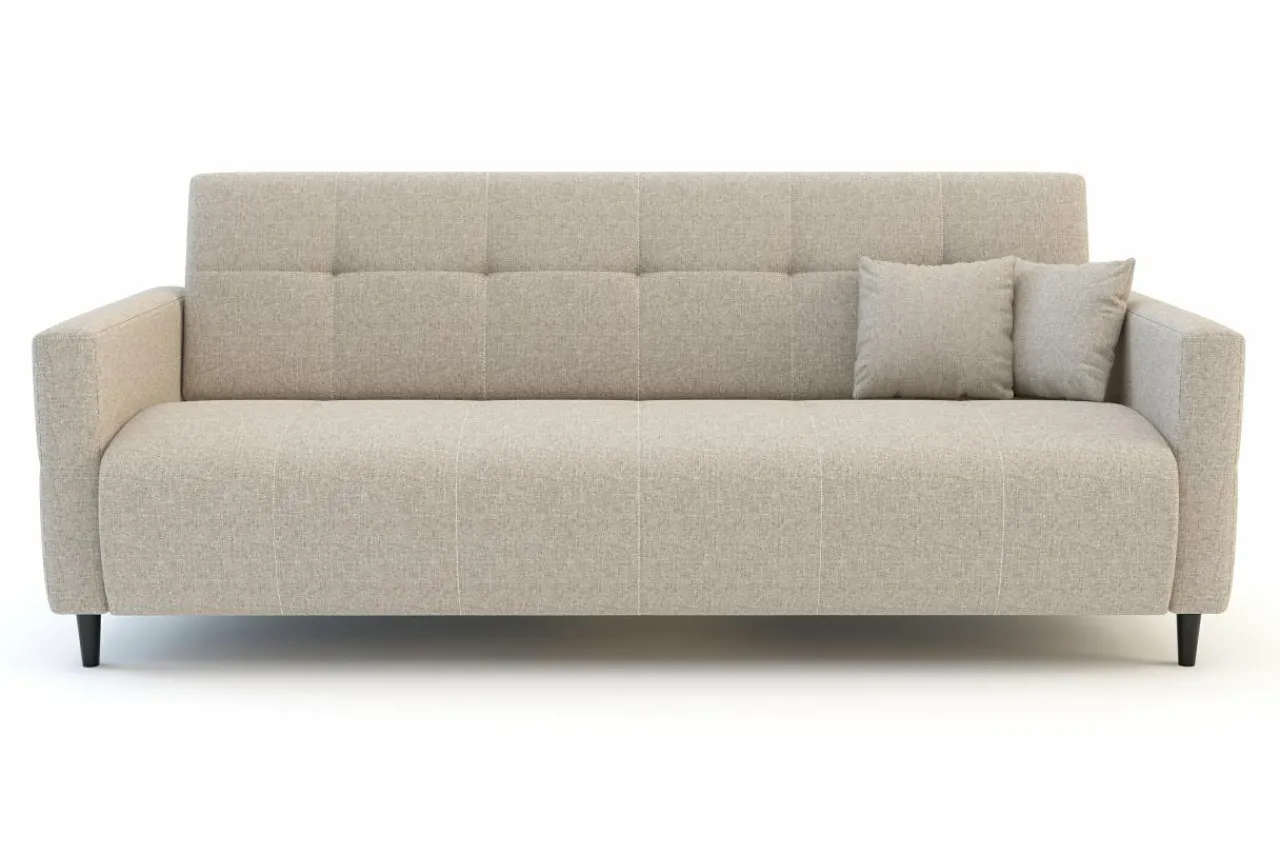 Połączenie pianki i sprężyn falistych w siedzisku i oparciu sprawia, że po rozłożeniu powierzchnia spania wersalki dobrze dopasowuje się do kształtu ciała. Ciekawym elementem jest ozdobne pikowanie, które ładnie przełamuje pozorna prostotę siedziska i oparcia. Tapicerowane podłokietniki subtelnie uzupełniają linie mebla i pozwalają przybrać wygodna pozycję.