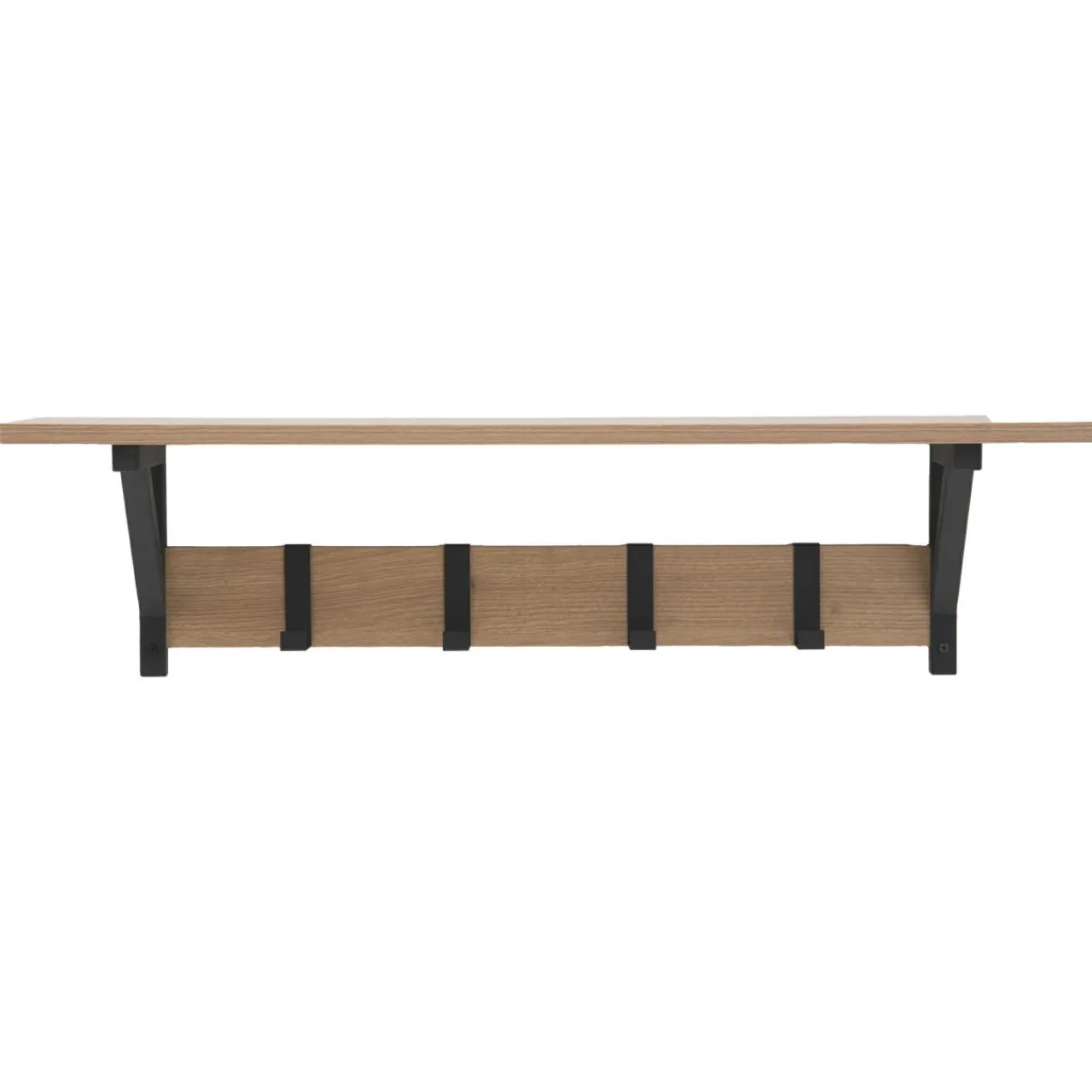 Korpus wieszaka wykończony jest okleiną drewnopodobną. Rysunek słojów i sęków przypomina naturalne drewno dębowe.