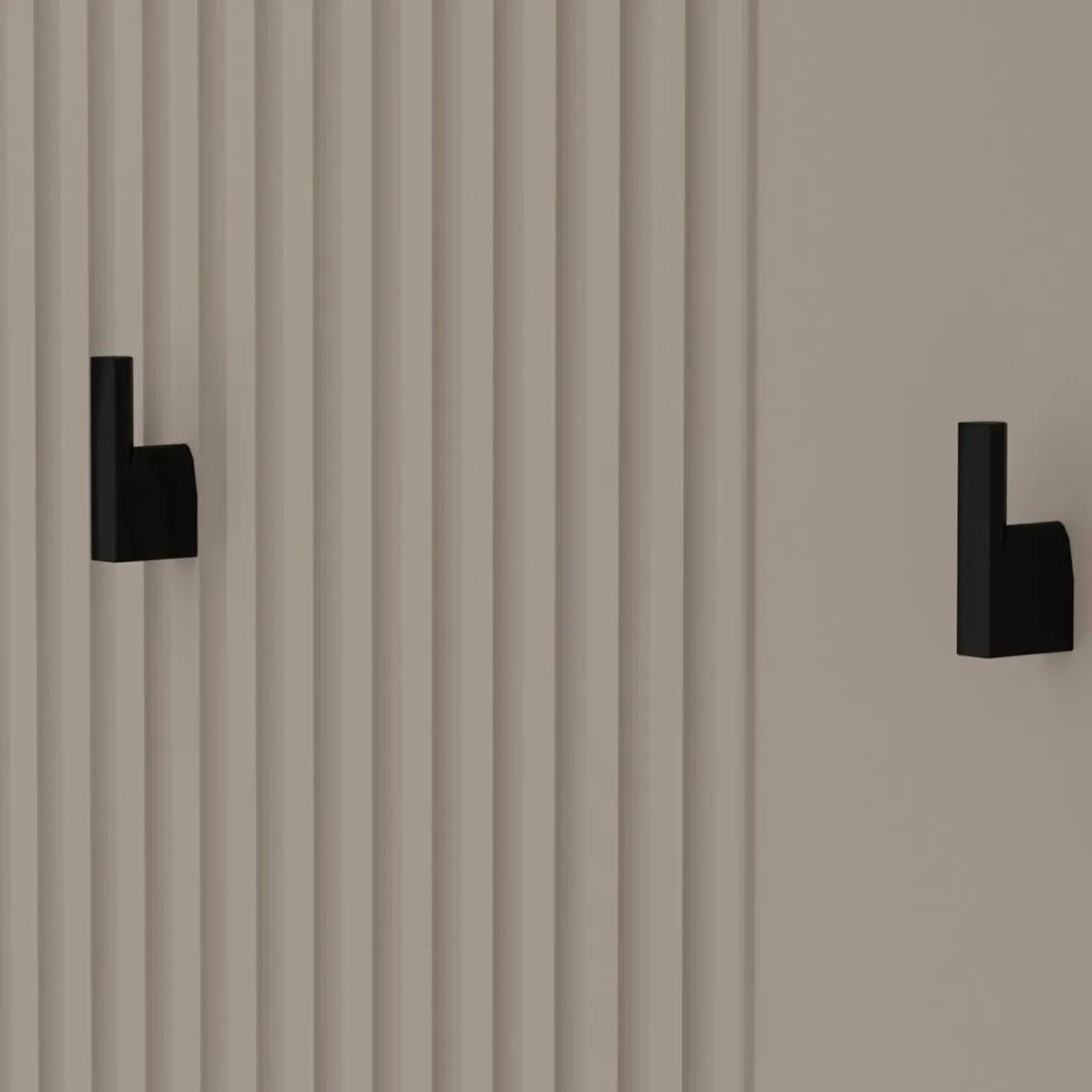 - Ryflowane fronty w kolorze taupe idealnie zgrywają się z korpusami. Wykończone są laminatem i folią.