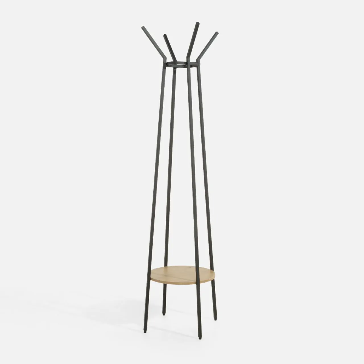 Wieszak z półką LINSEN to praktyczny mebel, który pozwala wygodnie przechowywać ubrania i akcesoria. Dzięki wolnostojącej konstrukcji nie wymaga montażu na ścianie.