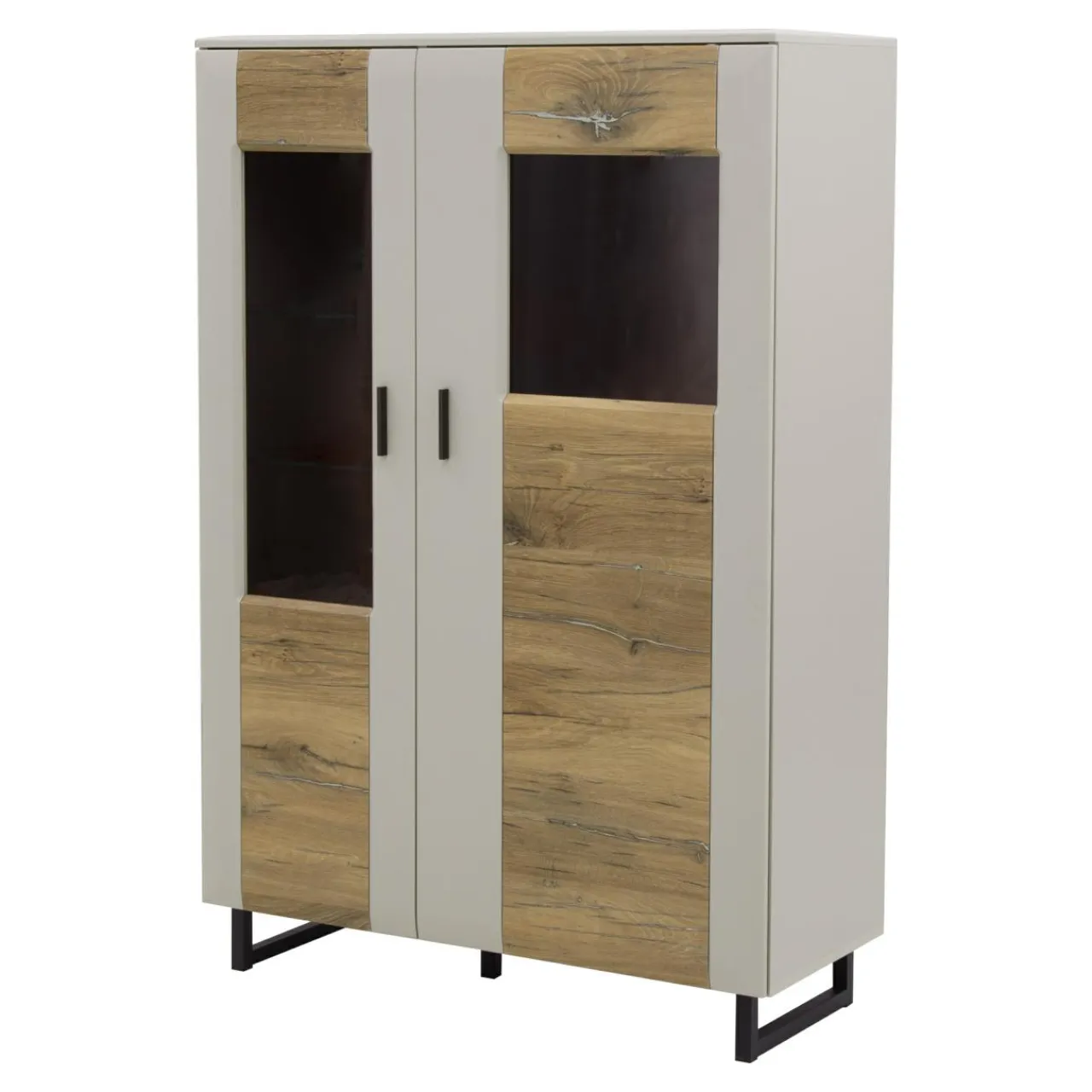 Witryna z podwójnymi drzwiami ROMY prawa + oświetlenie LED 2 pkt., białe ciepłe