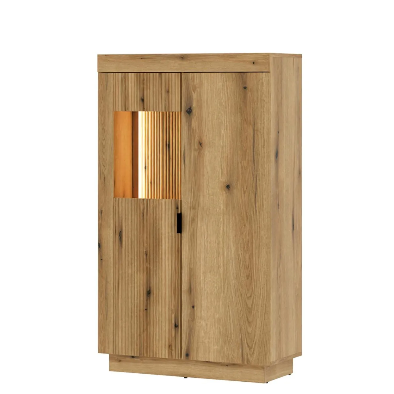 - Witryna posiada w zestawie oświetlenie o ciepłej barwie. Subtelne światło stworzy w salonie prawdziwą wystawę!