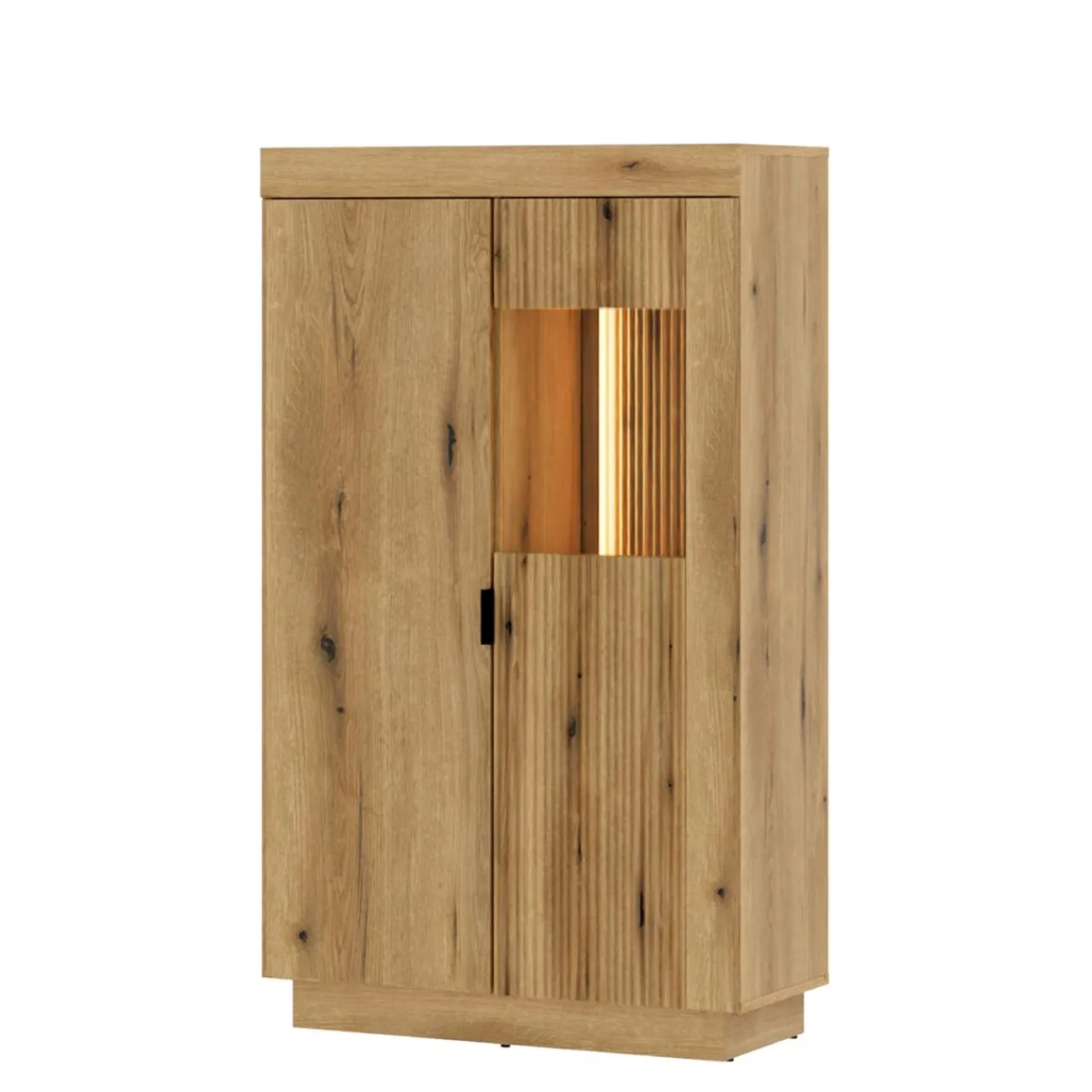 - Witryna posiada w zestawie oświetlenie o ciepłej barwie. Subtelne światło stworzy w salonie prawdziwą wystawę!