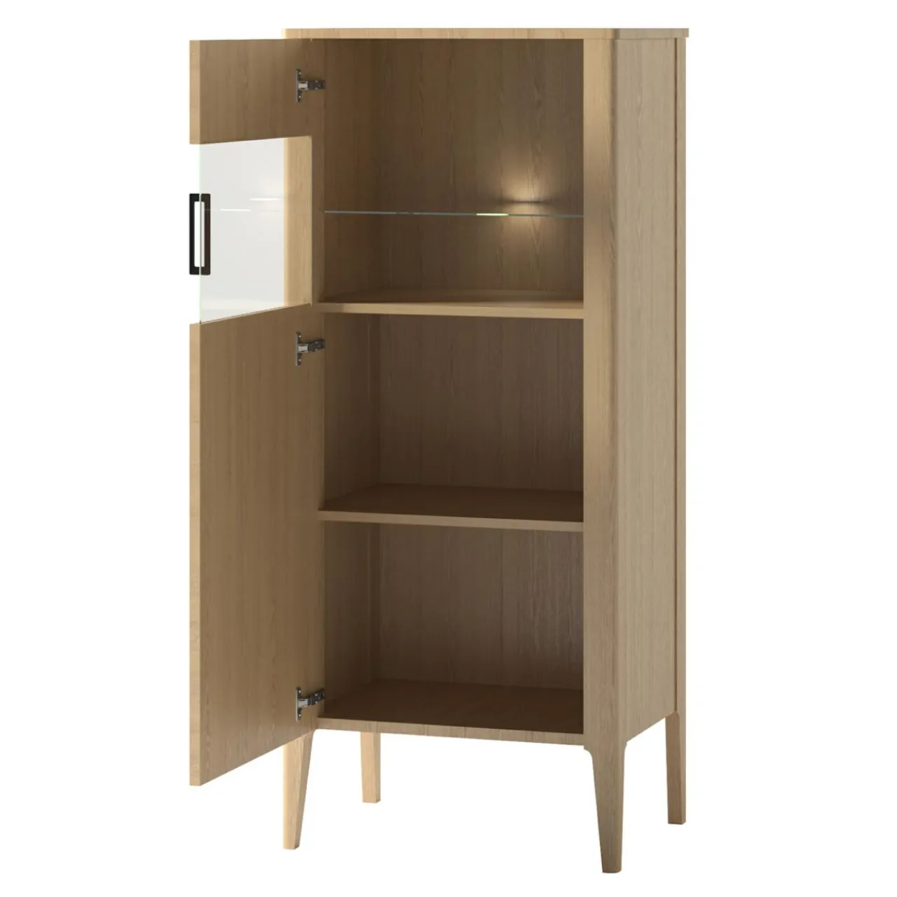 Witryna NAVARRA ma wysokość 132 cm, dzięki czemu jej górna część może stanowić półkę, na której postawisz ulubionego kwiatka, świeczki lub ramki ze zdjęciami.