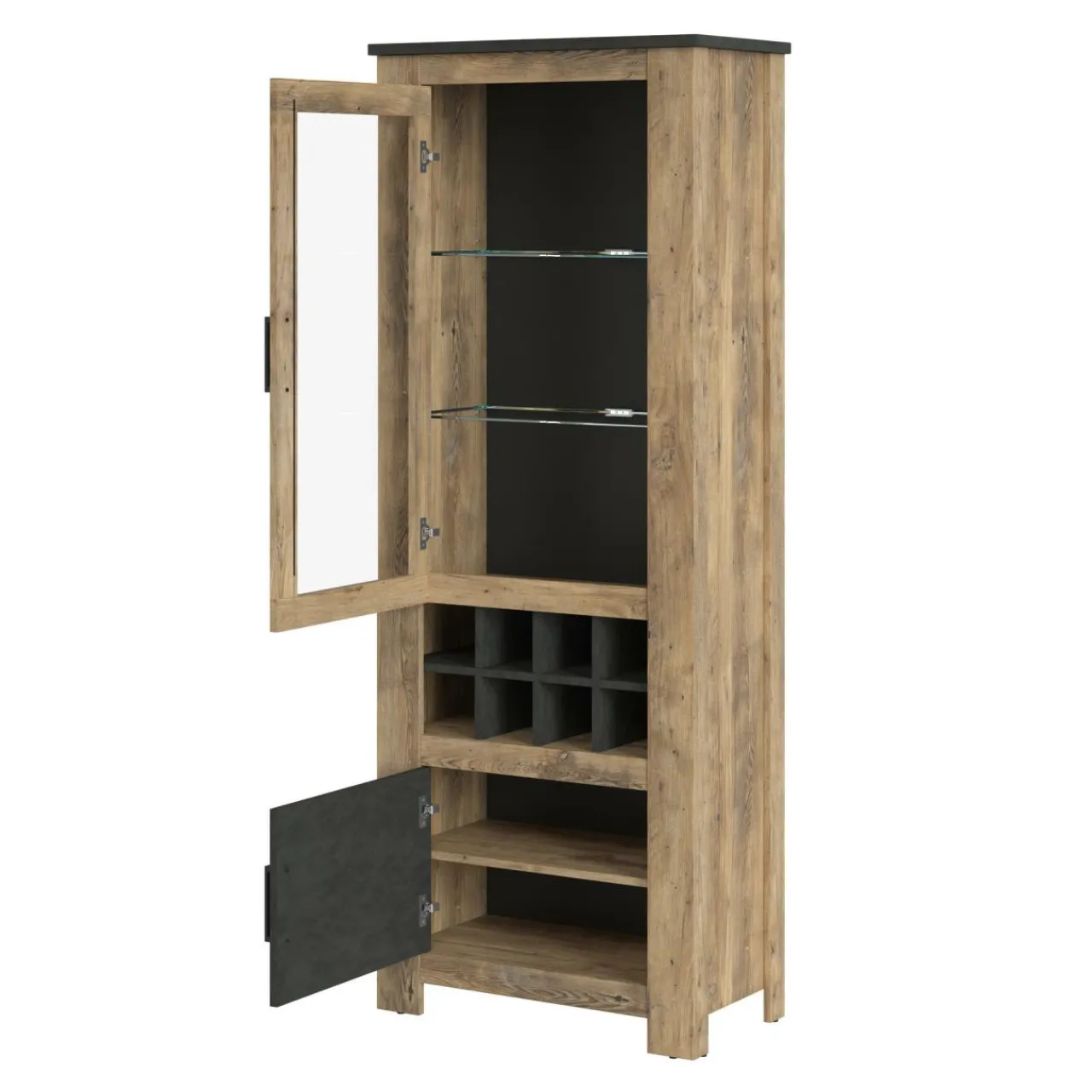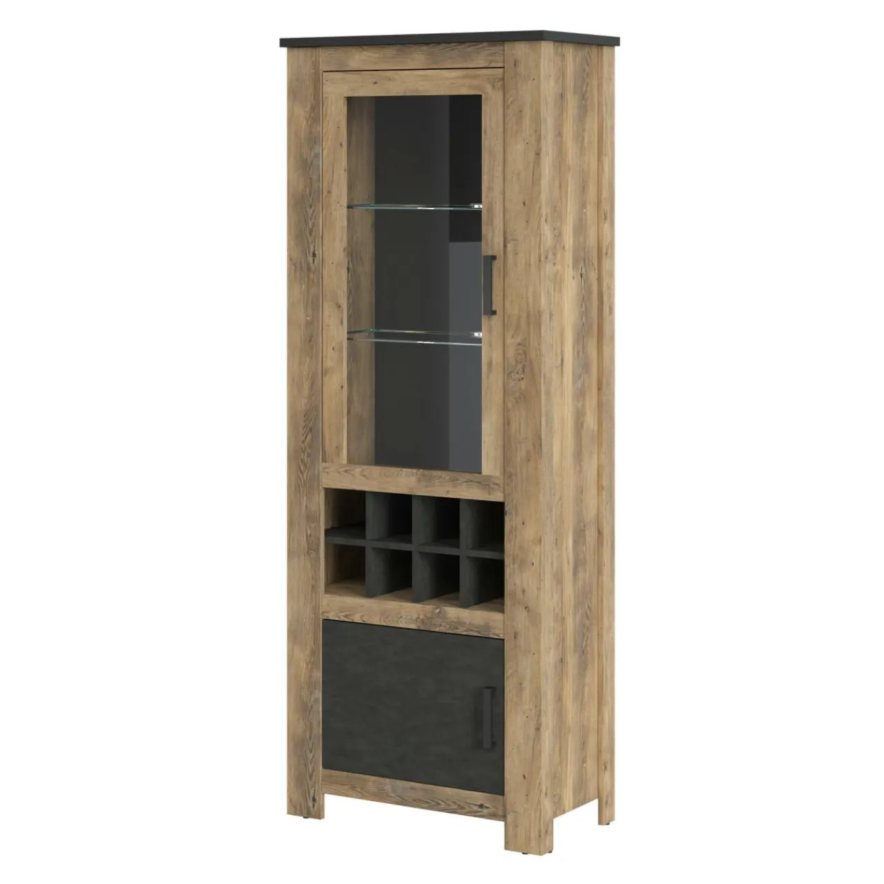 Witryna rustykalna z miejscem na wino RAPALLO + oświetlenie LED, 2pkt., białe ciepłe