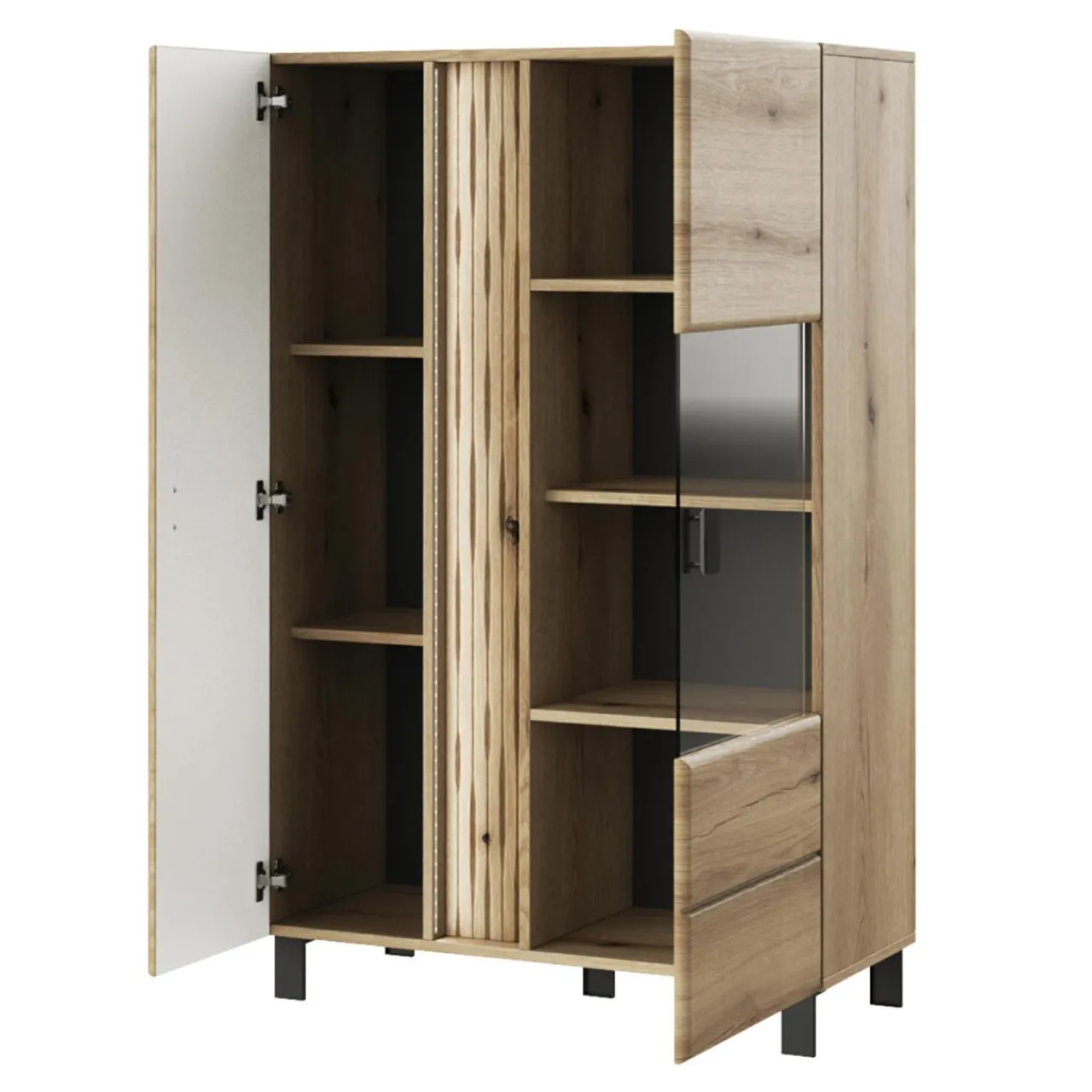 Znajdziesz w nim miejsce zarówno na wyeksponowanie kolekcji ozdobnego szkła, jak również na poukładanie mniej reprezentatywnych przedmiotów.