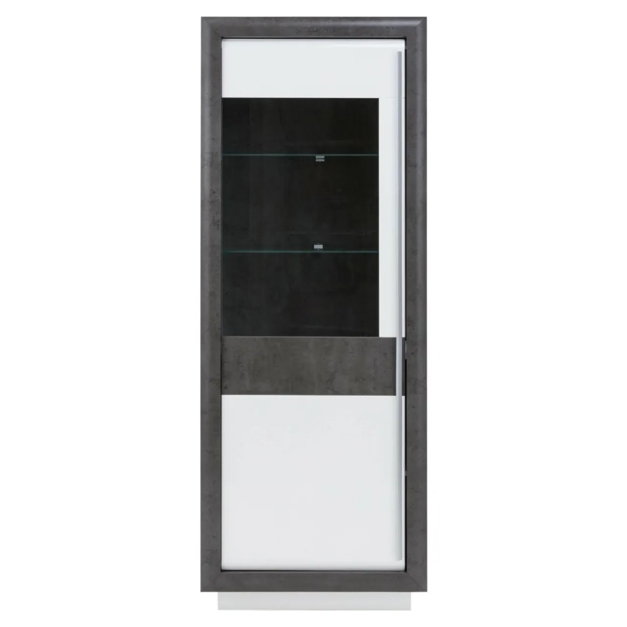 Wnętrze podzielono na standardowe półki w części zamkniętej i półki szklane w części widocznej przez frontową szybę, na których umieścimy dekoracje.