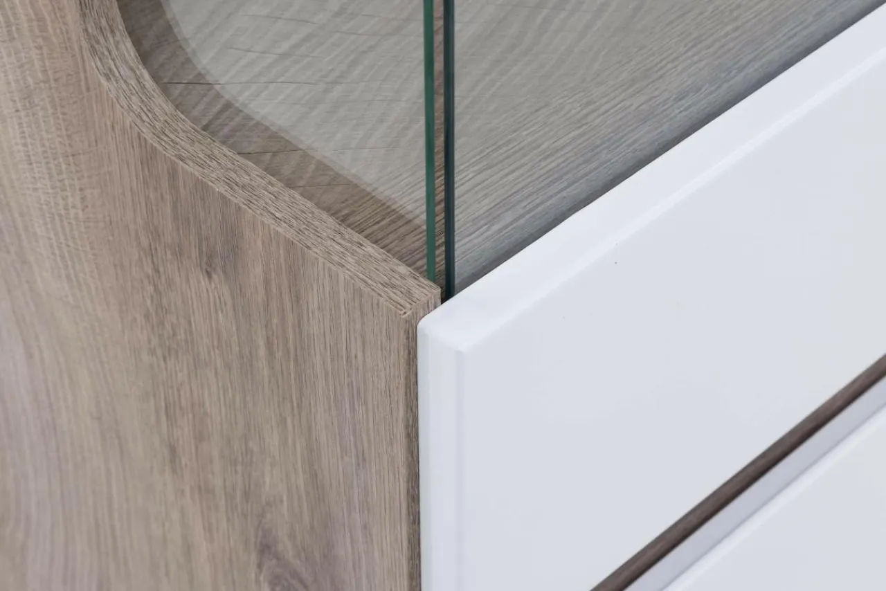 W drzwiach zamontowano zawiasy z systemem cichego domyku, dzięki czemu drzwi nie hałasują podczas zamykania.