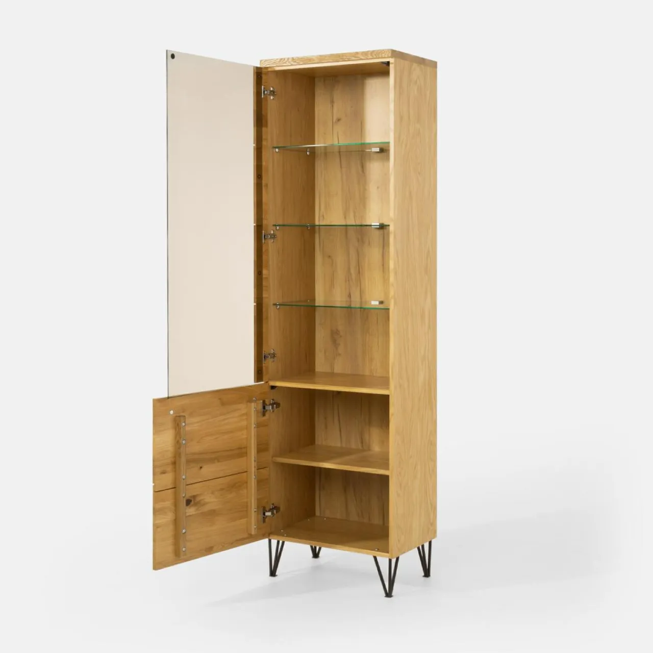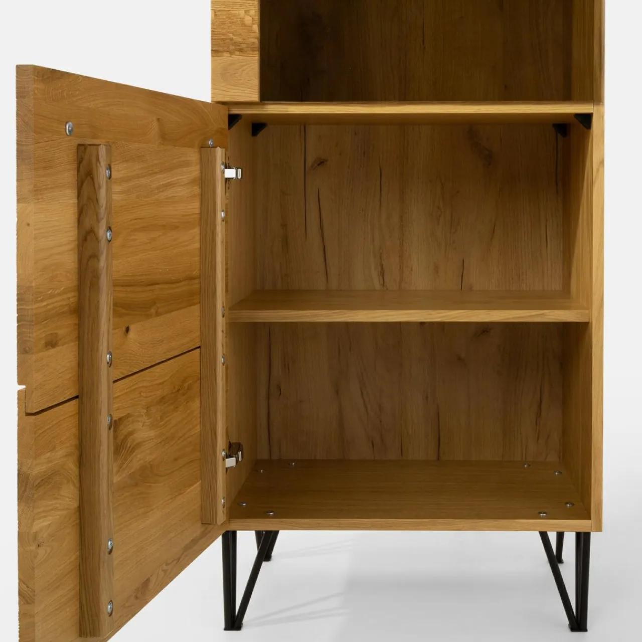 - Fronty z litego drewna dębowego oraz wykończenia mebli z naturalnej okleiny dębowej sprawiają, że meble posiadają niepowtarzalny rysunek drewna.