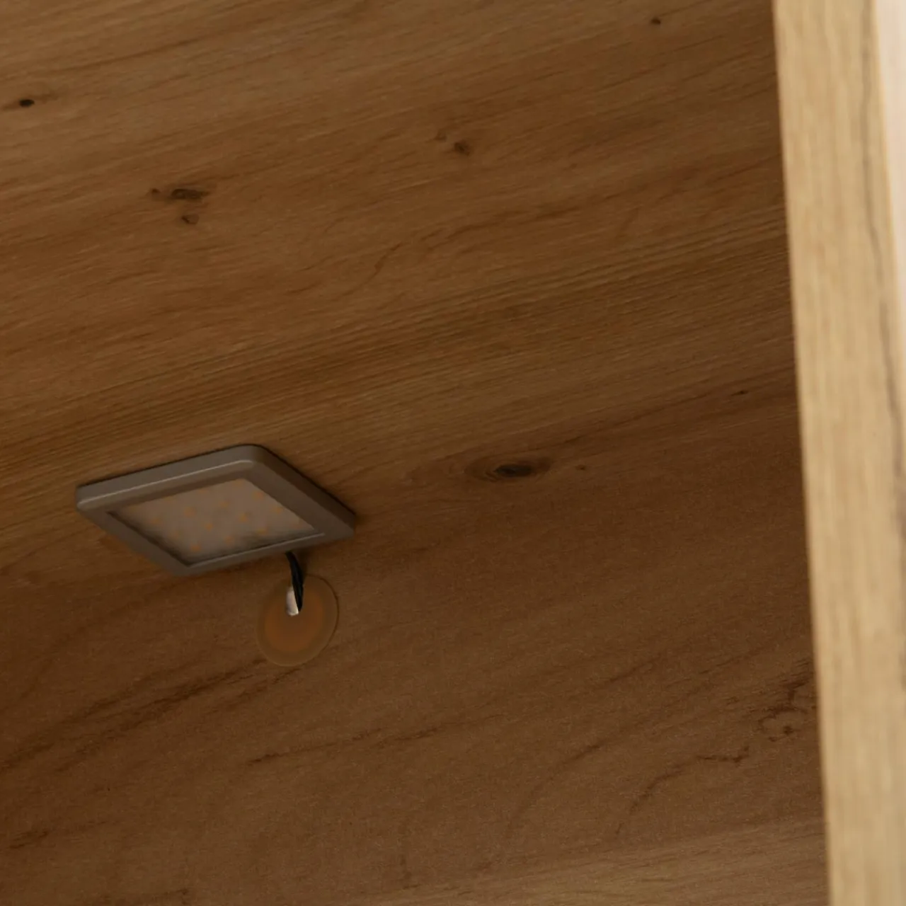- Dobierz do witryny dodatkowe oświetlenie. Jasna, ciepła barwa podkreśli ciepłe barwy mebli oraz rozjaśni wnętrze, ujawniając schowane za szklanym frontem dekoracje.