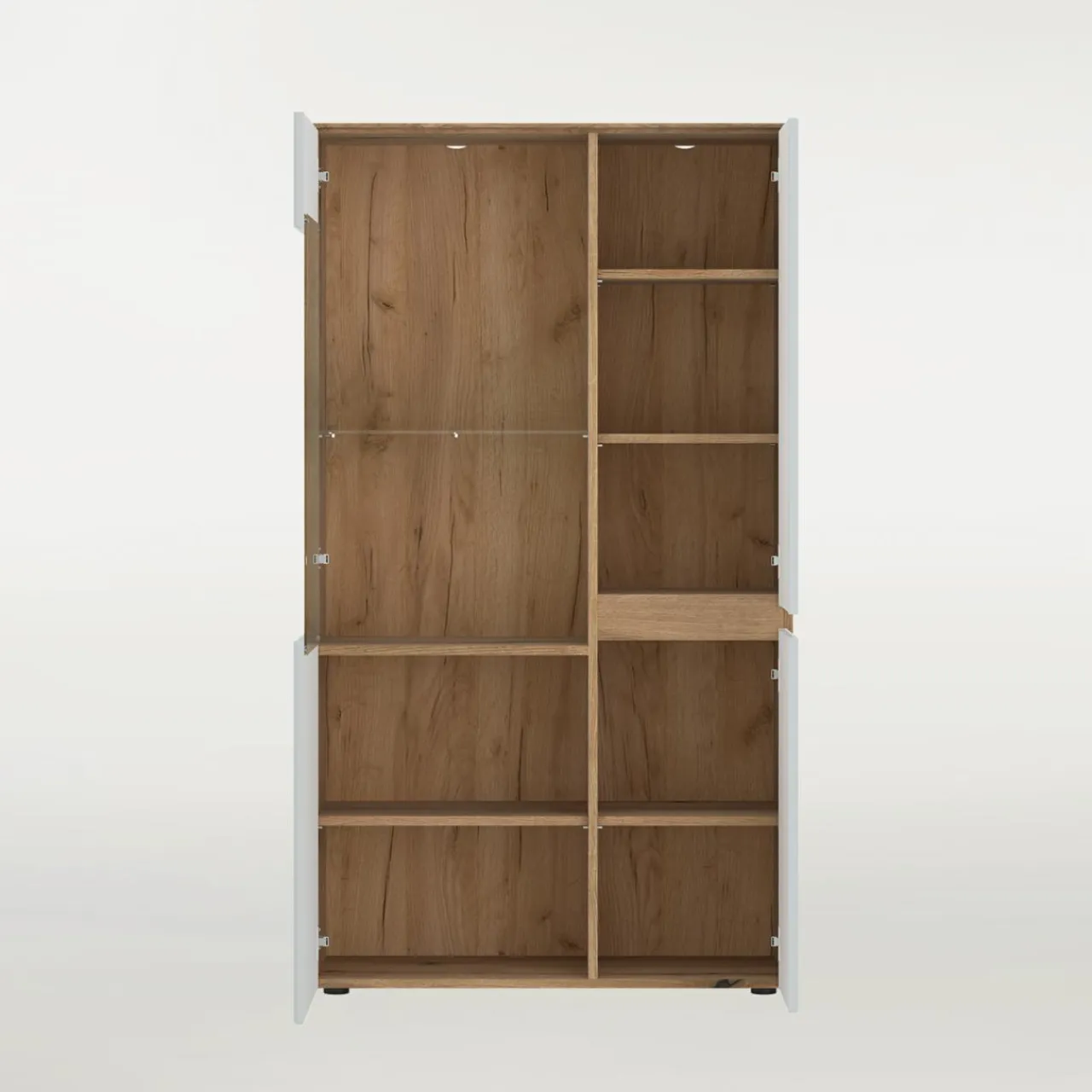 - Za szklanym frontem wyeksponujesz część porcelany, dekoracje lub pamiątki.