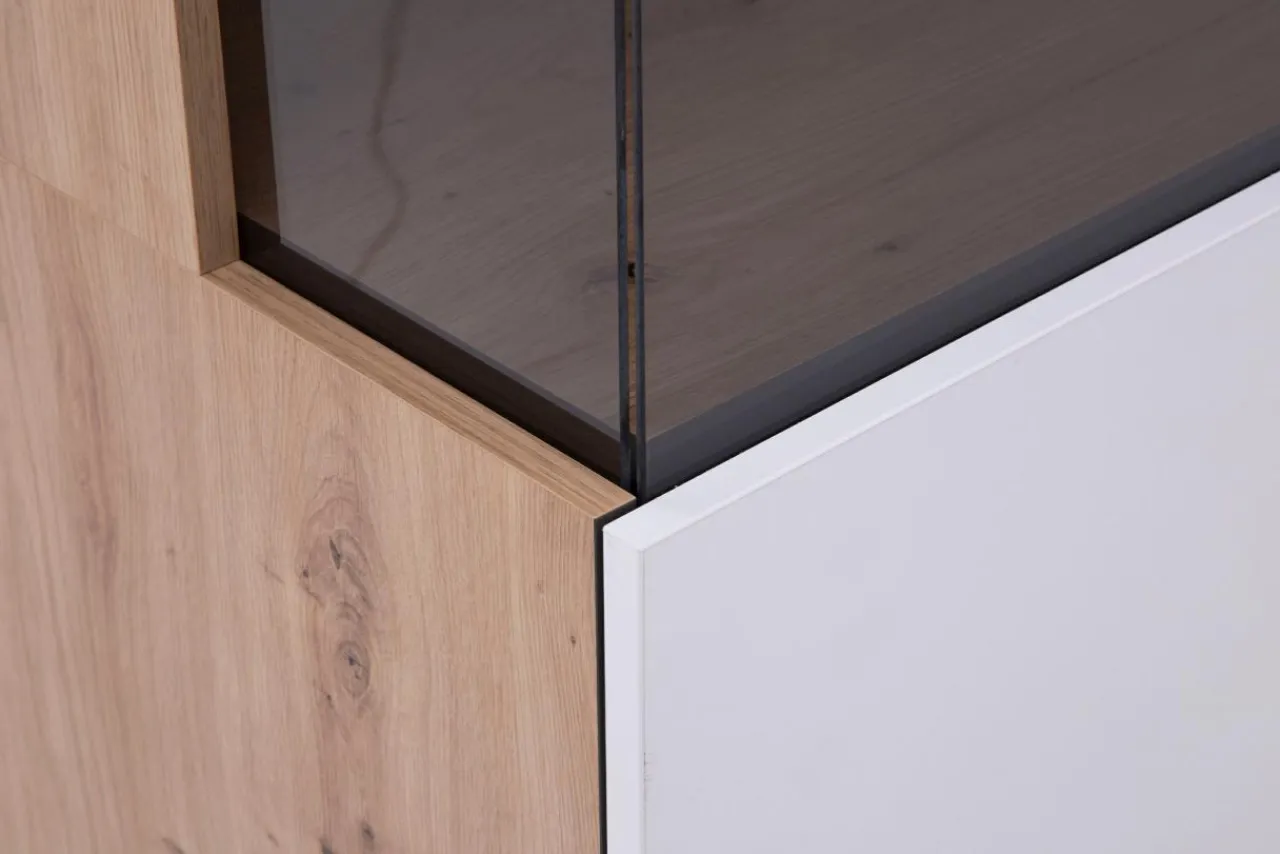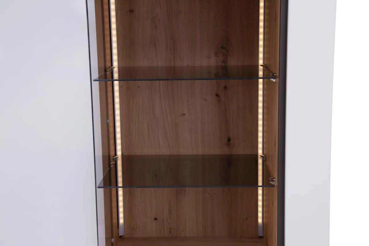 - Przeszklone wnęki to świetne miejsce na kolekcję kieliszków czy Twoje ulubione przedmioty. Możesz dodatkowo je uwydatnić, dokupując oświetlenie do witryny.