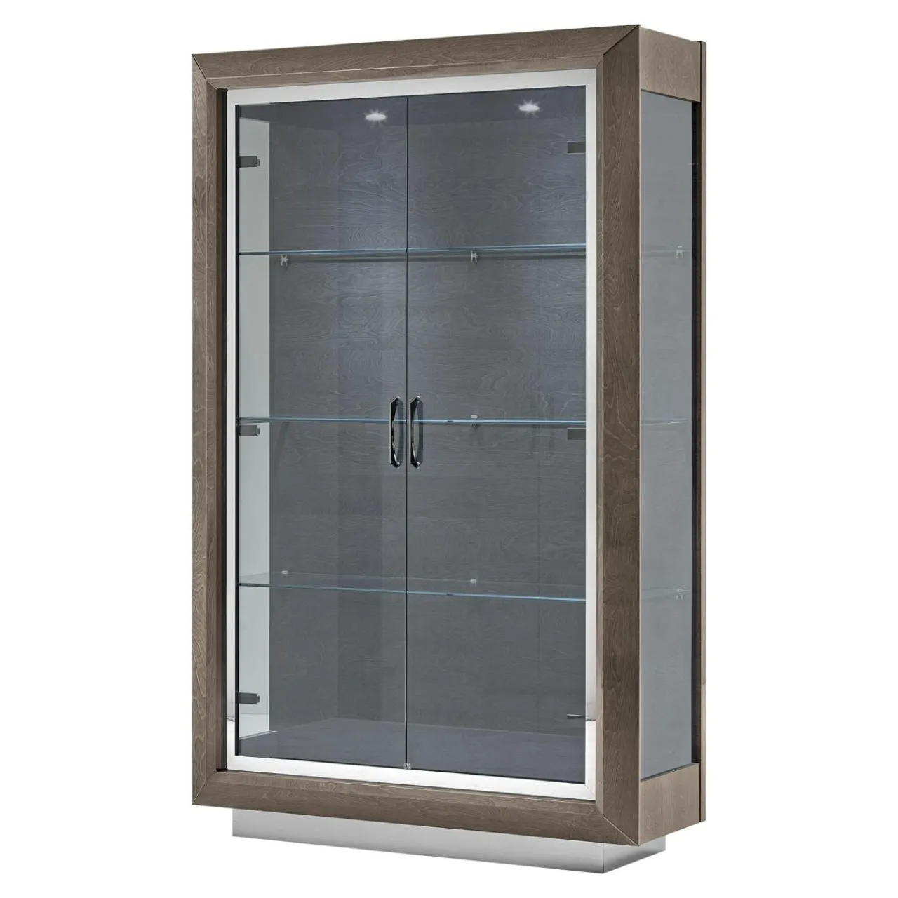 - Oświetlenie LED zamontowane na górze witryny rzuca delikatne światło na wszystkie szklane półki.