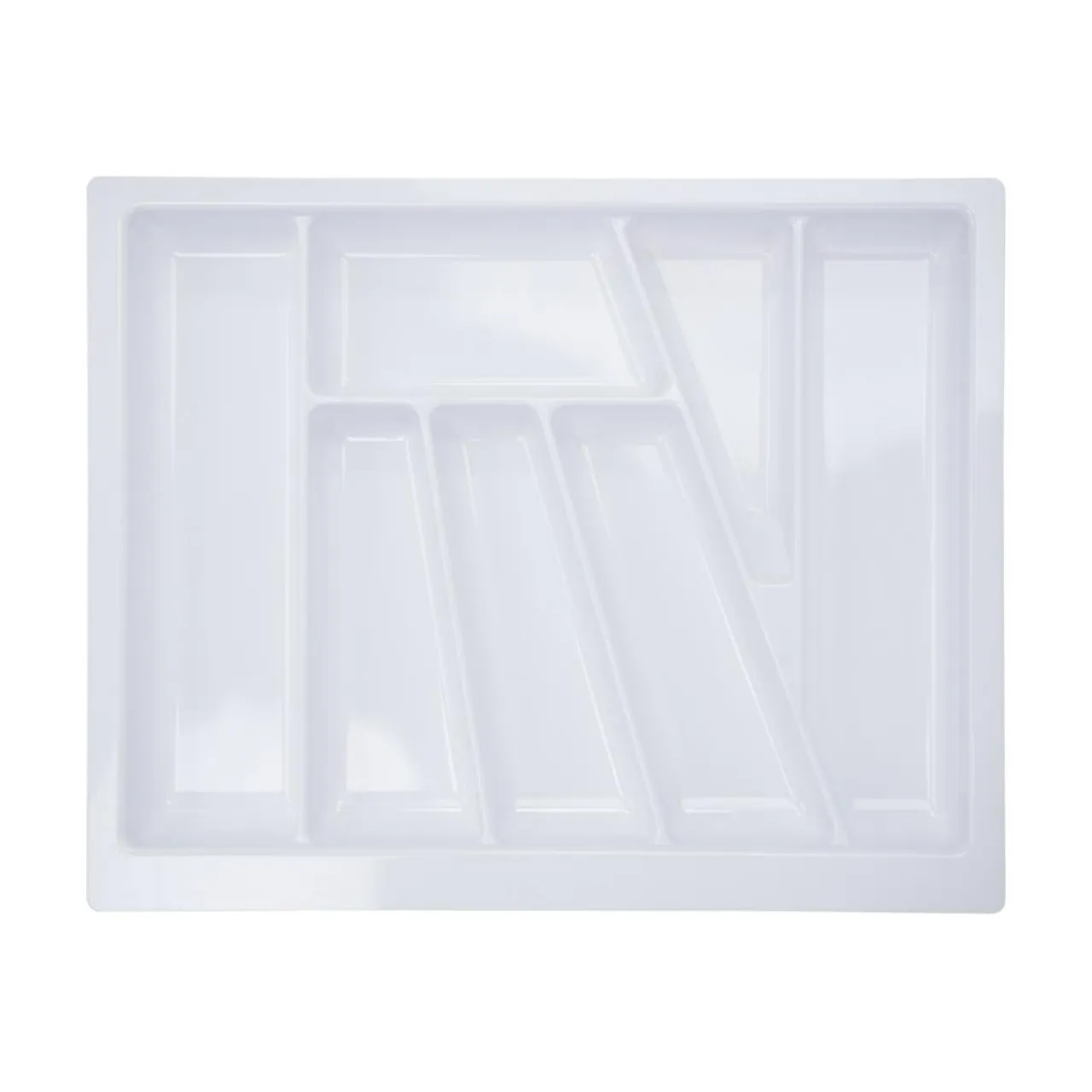 Wykonany z tworzywa sztucznego w białym kolorze posiada przegródki różnej długości.