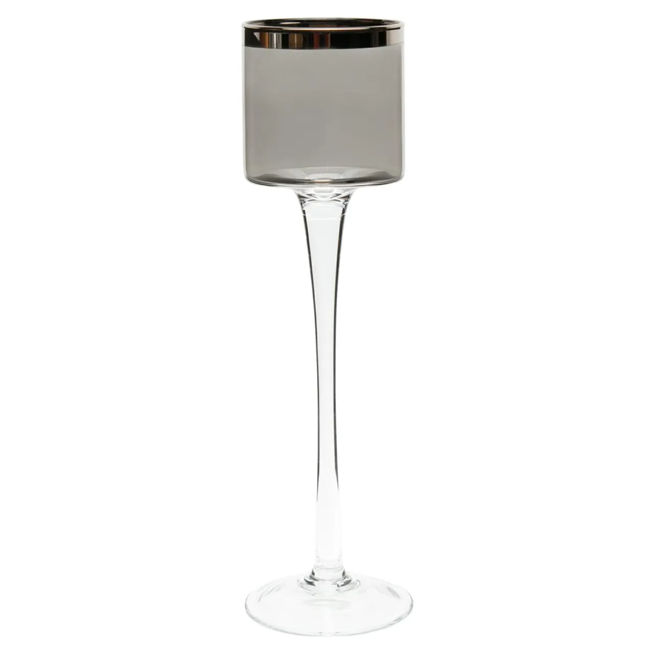 Wrześniak Świecznik kielich szklany czarny z platynowym paskiem 33 cm
