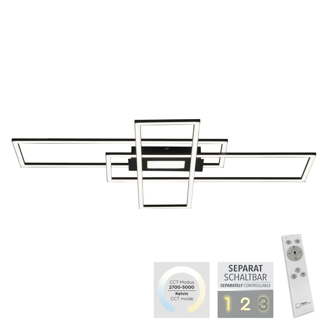 Zintegrowane z oświetleniem LED ramiona lampy można ustawić tak, by wizualnie jak najlepiej odpowiadał otoczeniu. Geometryczny design lampy, na który składają się dwie prostokątne ramki daje naprawdę wiele możliwości.