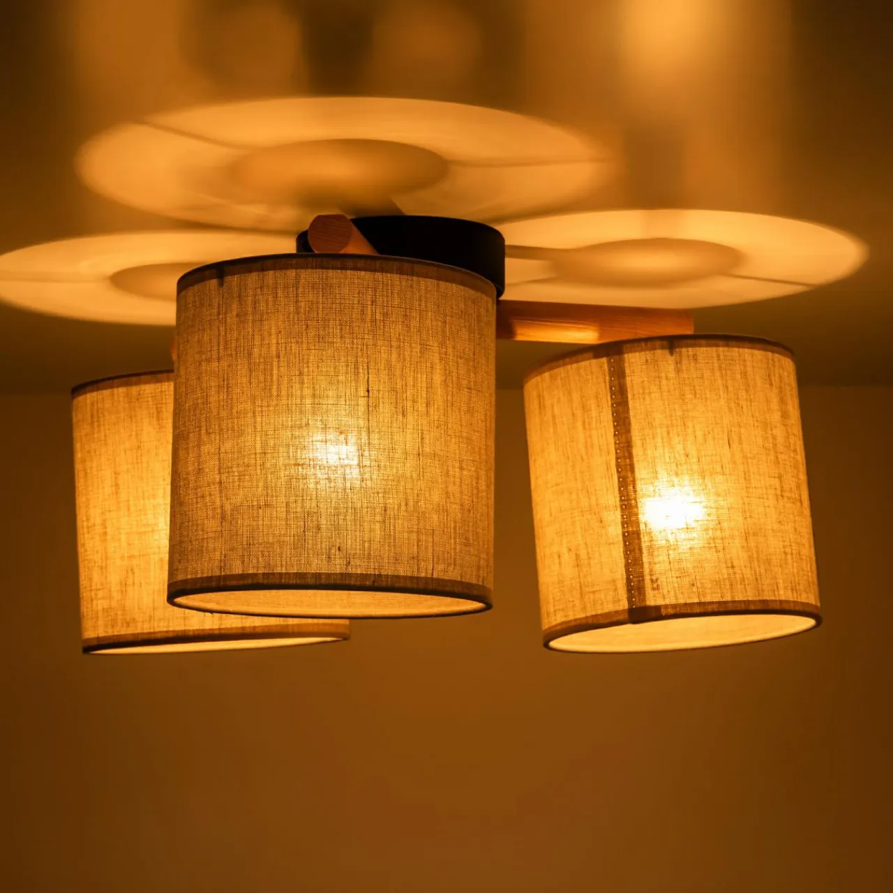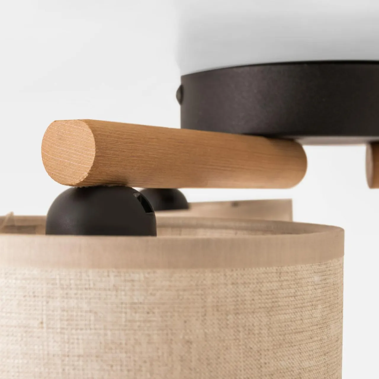 - 3 abażury o kształcie walców zostały dopełnione drewnianą listwą w kolorze dębu, która podkreśla kolorystykę natury.