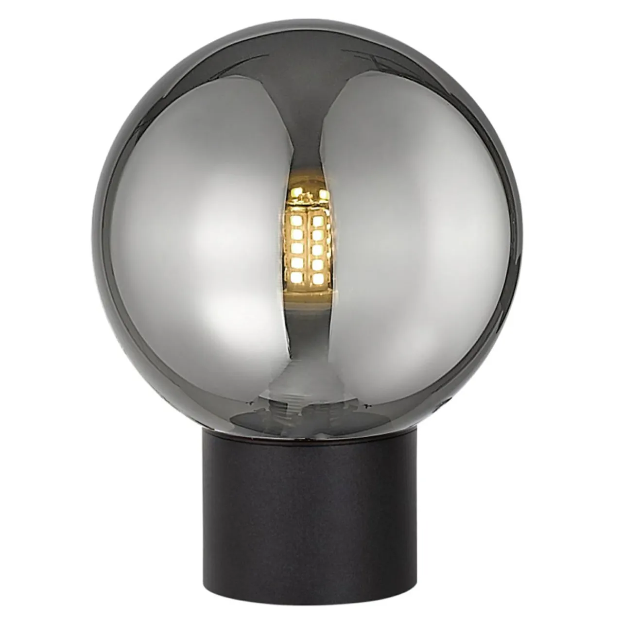 - Baza w czarnym, matowym kolorze została dopełniona przez transparentny klosz w odcieniu szarości, idealnie pasujący do chłodnych wnętrz.