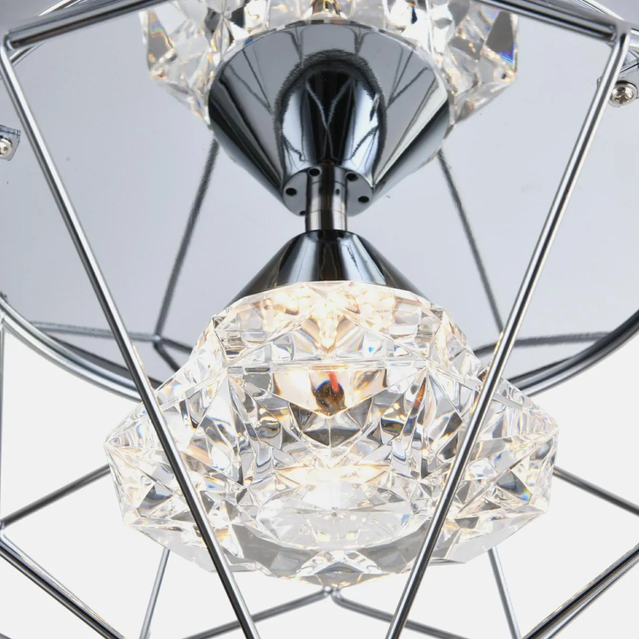 - Wnętrze lampy zdobi akrylowy kryształ, w którym ukryte jest oświetlenie LED.
