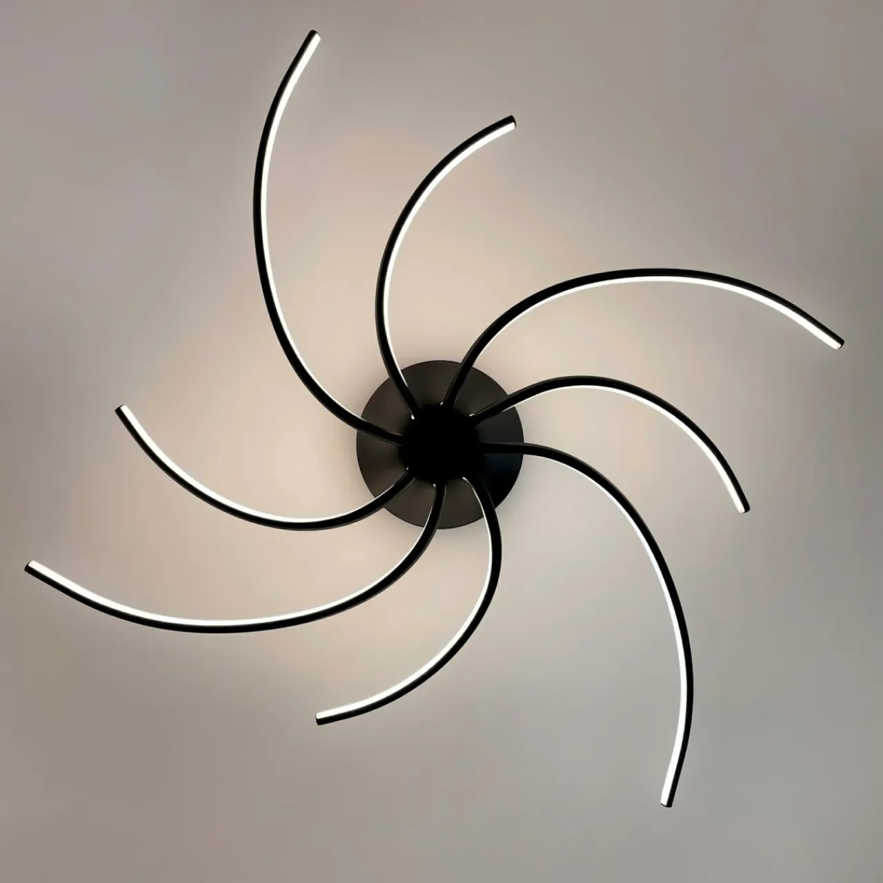 - Odważny kształt lampy przywodzi na myśl szereg wstęg wirujących wokół okrągłej podsufitki, to wzór który upiększy Twój salon modnym wzorem.
