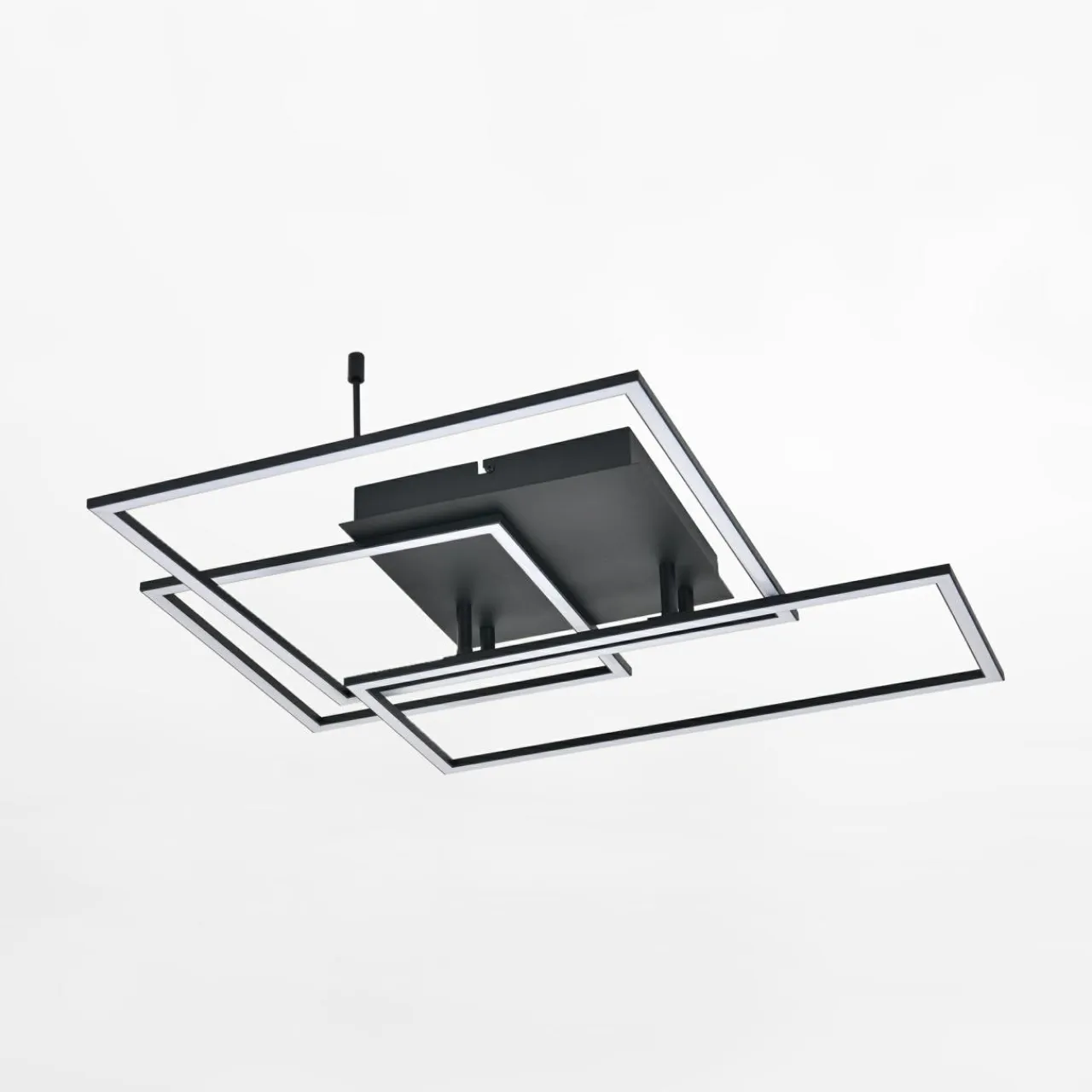 Geometryczny kształt tej lampy tworzą 3 ramki i lustrzana powierzchnia podstawy.