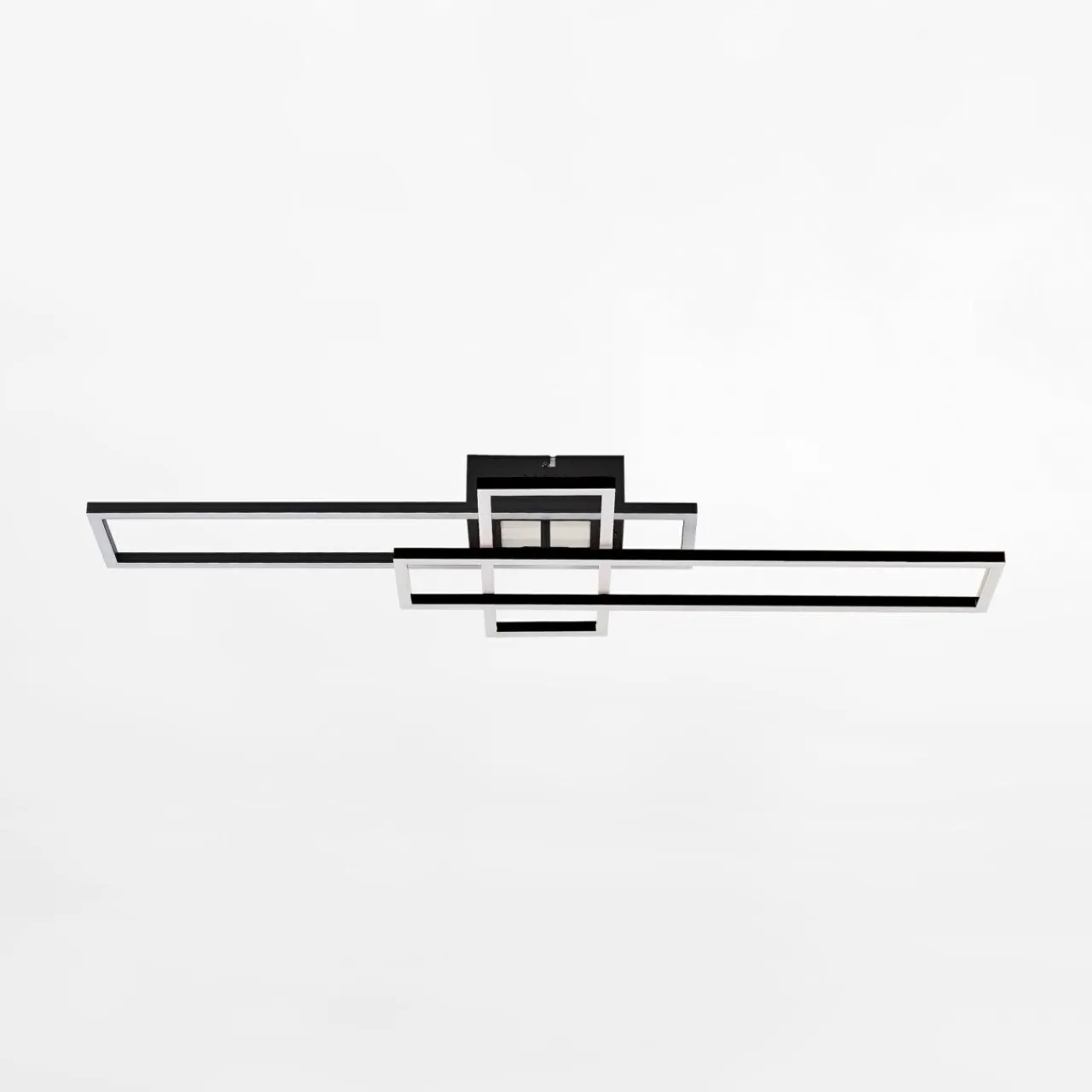 LUMENZ to lampa idealna dla Ciebie. Po zawieszeniu i ustawieniu ramek ma ponad 90 cm szerokości. Jej wyjątkowa estetyka płynnie łączy się z aranżacjami, w których dominuje stal, chrom i szkło. Gładkie wykończenie w czerni świetnie zaprezentuje się w surowym, nowoczesnym wnętrzu.
