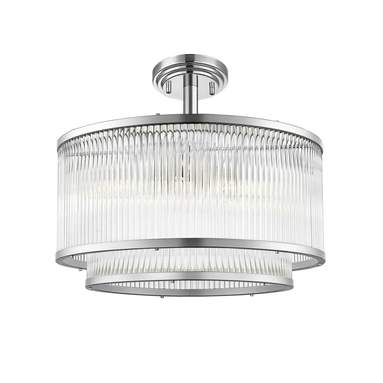 Jej szklany klosz wkomponowany w metalową ramę i wzbogacony chromowanym wykończeniem wspaniale komponuje się z jasnymi kolorami. Jest wysmakowanym dodatkiem, który wzbogaca pomieszczenie o odrobinę szyku oraz elegancji.