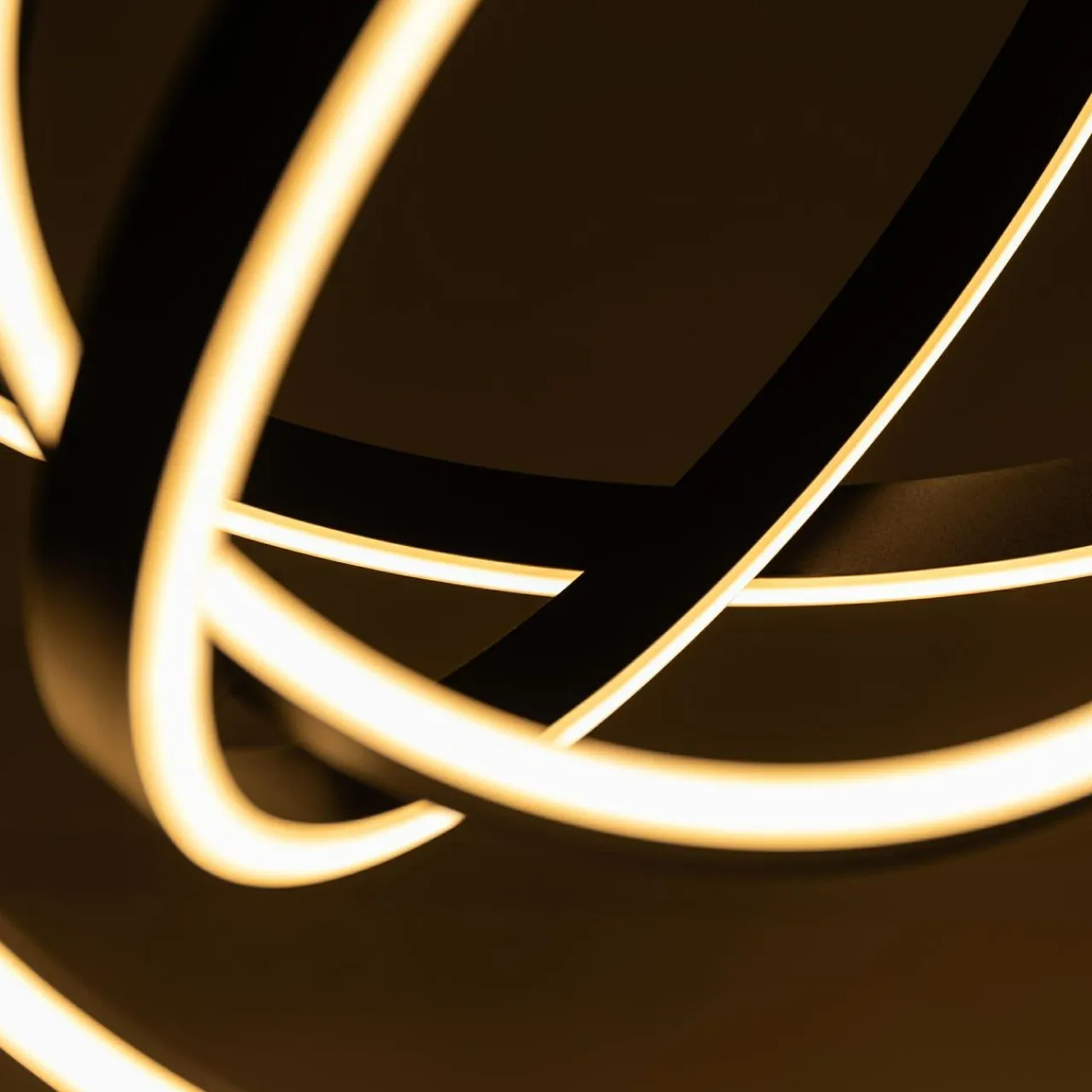 - Kształt ozdobnych elementów lampy tworzą połączone ze sobą 4 okręgi, które sprawiają wrażenie jakby ciągle były w ruchu, niczym orbity planet.