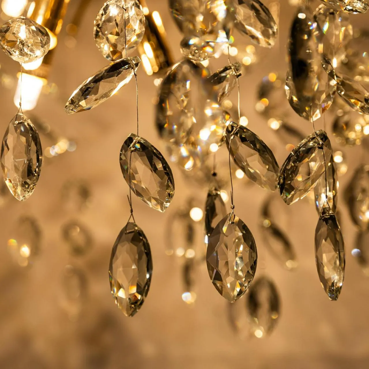 - Złota oprawa lampy podkreśla błyszczące wykończenie.