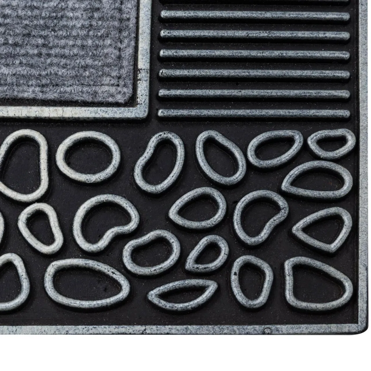 - Dzięki gumowemu podkładowi, wycieraczka utrzymuje się stabilnie na posadzce.