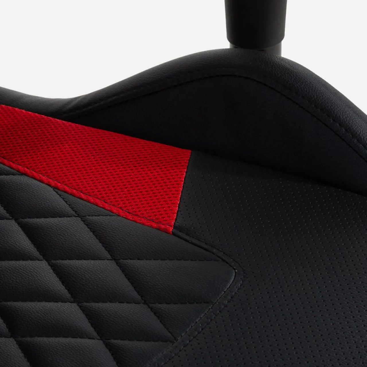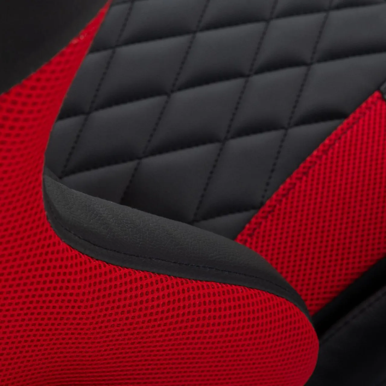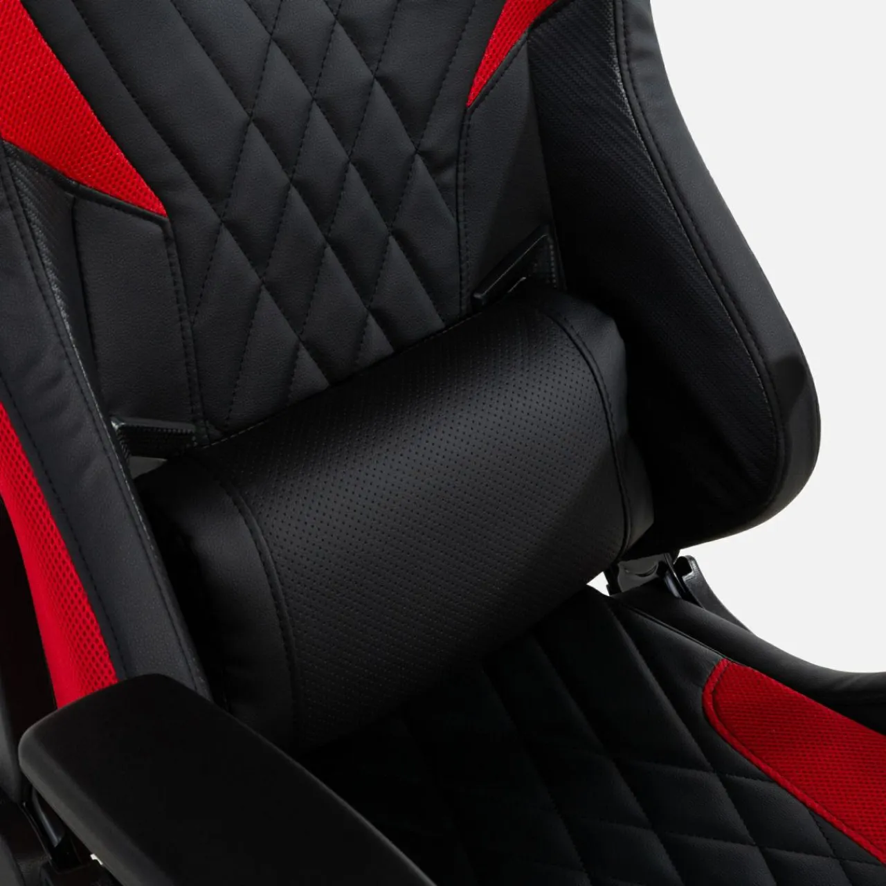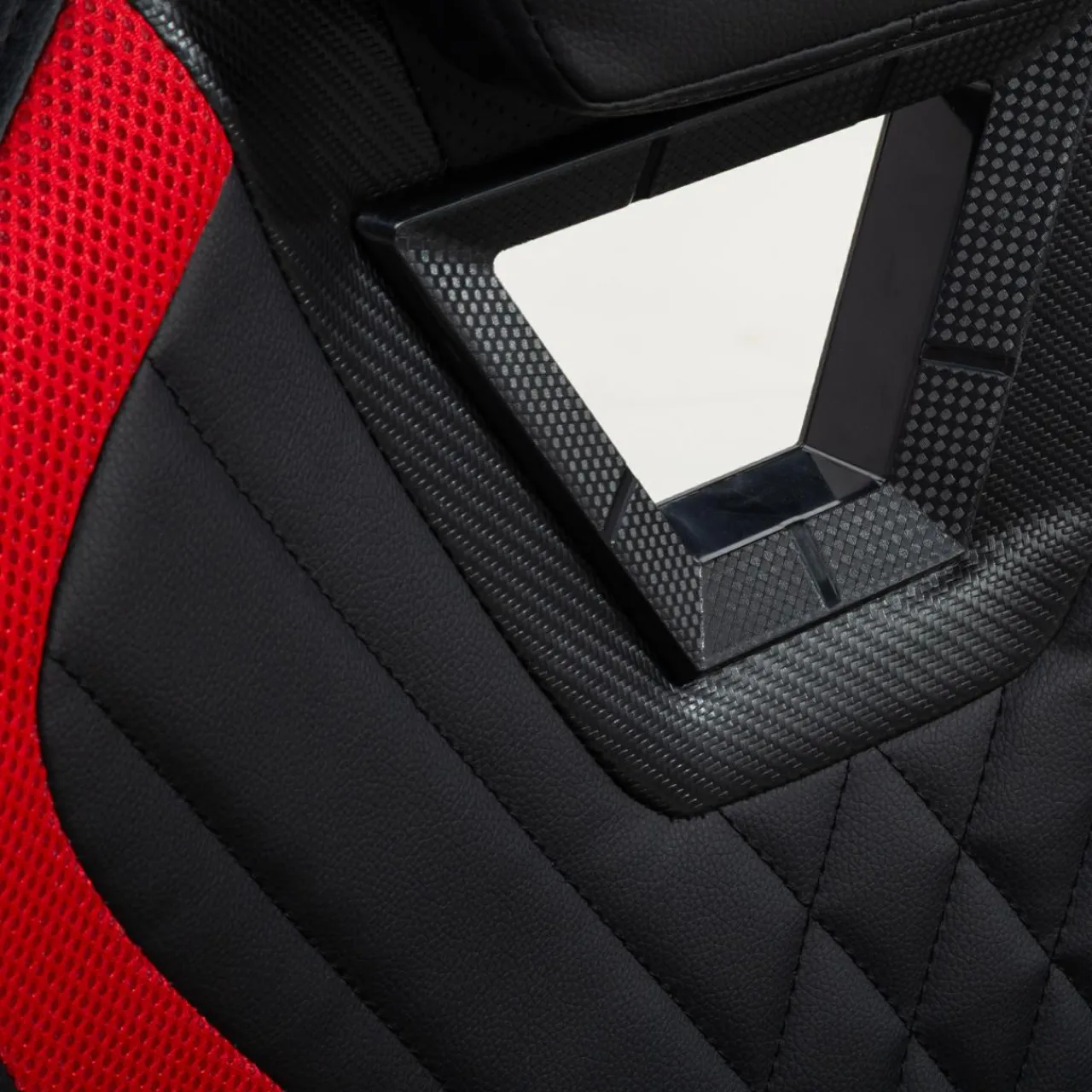 - Obicie z ekoskóry w czarnym kolorze z czerwonymi wstawkami świetnie dopełni aranżację strefy gamingowej.